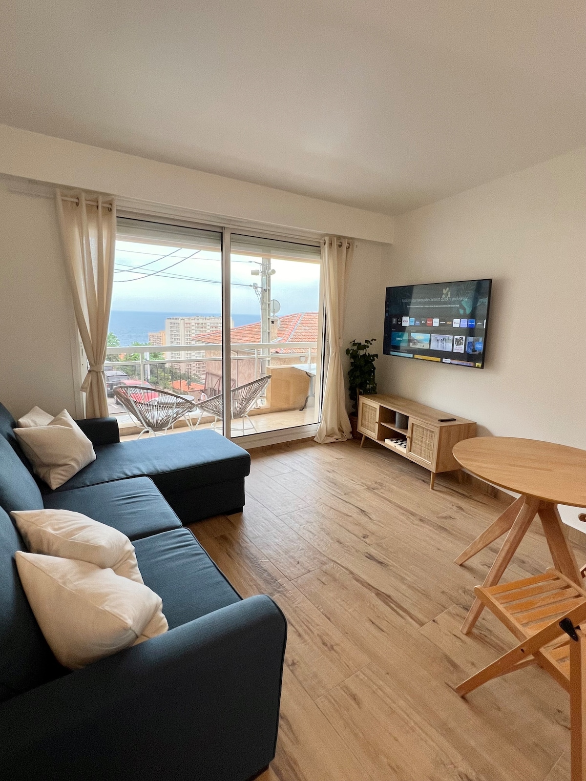 Sunny, modern apartment with spacious terrace, green pergola, and sea view. Just 5 min walk to Monaco (Casino, Café de Paris), 10 min to Larvotto Beach. Kitchen with washer & dishwasher, walk-in shower, Smart TV with Netflix/YouTube. Bakery, market & restaurants nearby – perfect for holidays or business on the Côte d’Azur.
