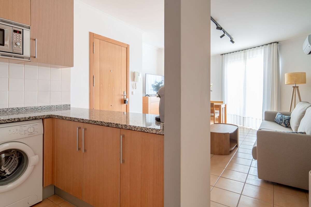 O apartamento, acabado de estrear, oferece o equilíbrio perfeito entre conforto e conveniência. Conta com camas amplas ideais para relaxar após um dia de sol e mar. As casas de banho são contemporâneas, com acabamentos de alta qualidade, duche espaçoso e todas as comodidades necessárias. A sala de estar é luminosa e com acesso a uma varanda privativa onde pode desfrutar da brisa marítima. A cozinha é totalmente equipada com eletrodomésticos novos, perfeita para preparar refeições caseiras.