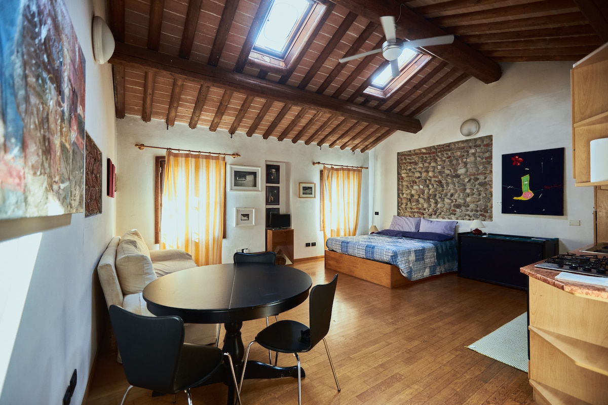Our attic is in one of the most emblematic "locations" in the historic center of Bassano del Grappa; Just a minute walking distance away from the center and the famous Ponte Vecchio. 5 minutes walk from the central train and bus station, connected to the main region's cities of historical and cultural interest such as Venice, Verona, Padua, Vicenza and Treviso. To live an unforgettable experience in the heart of Veneto