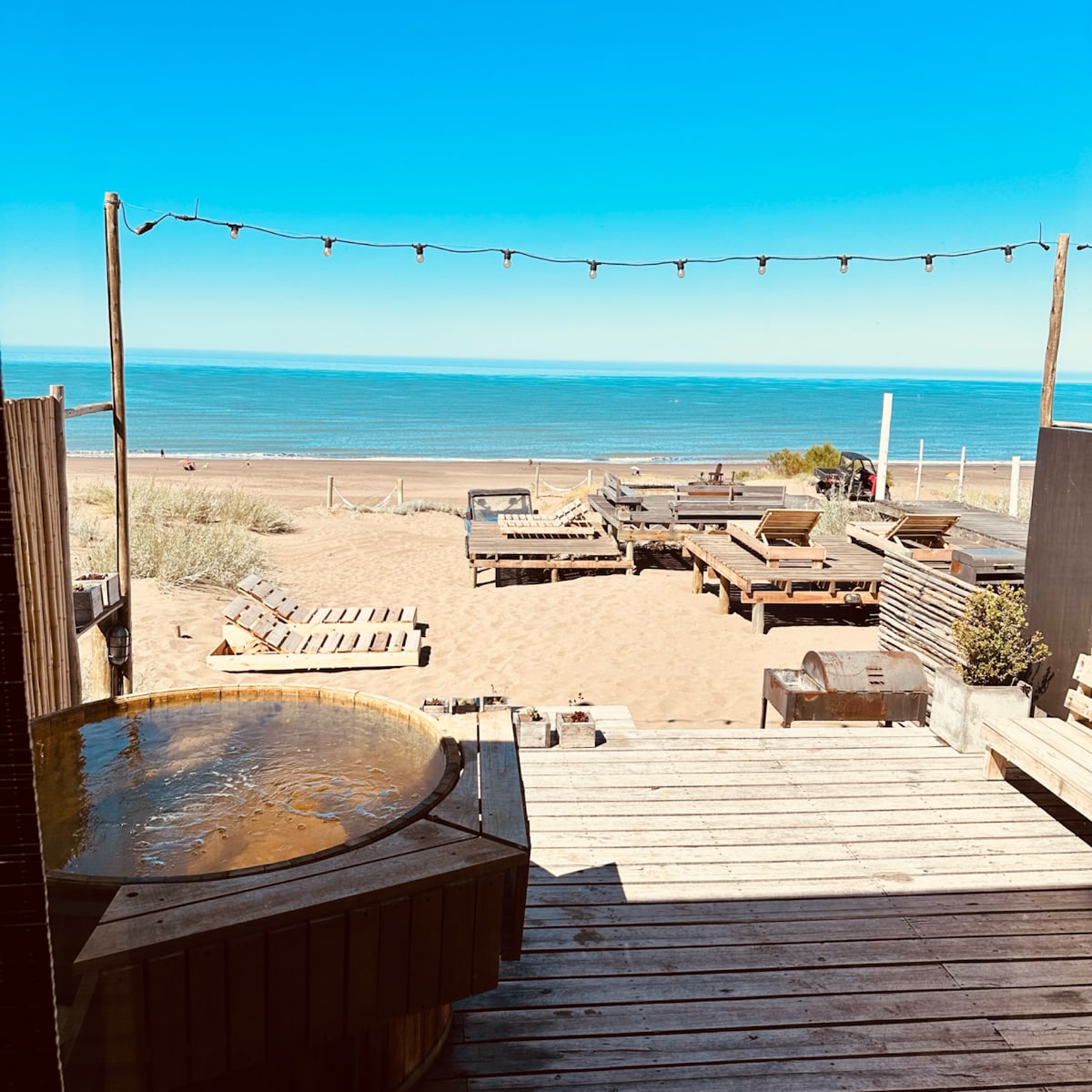 海滨沙滩上,配备户外炉灶和迷你泳池