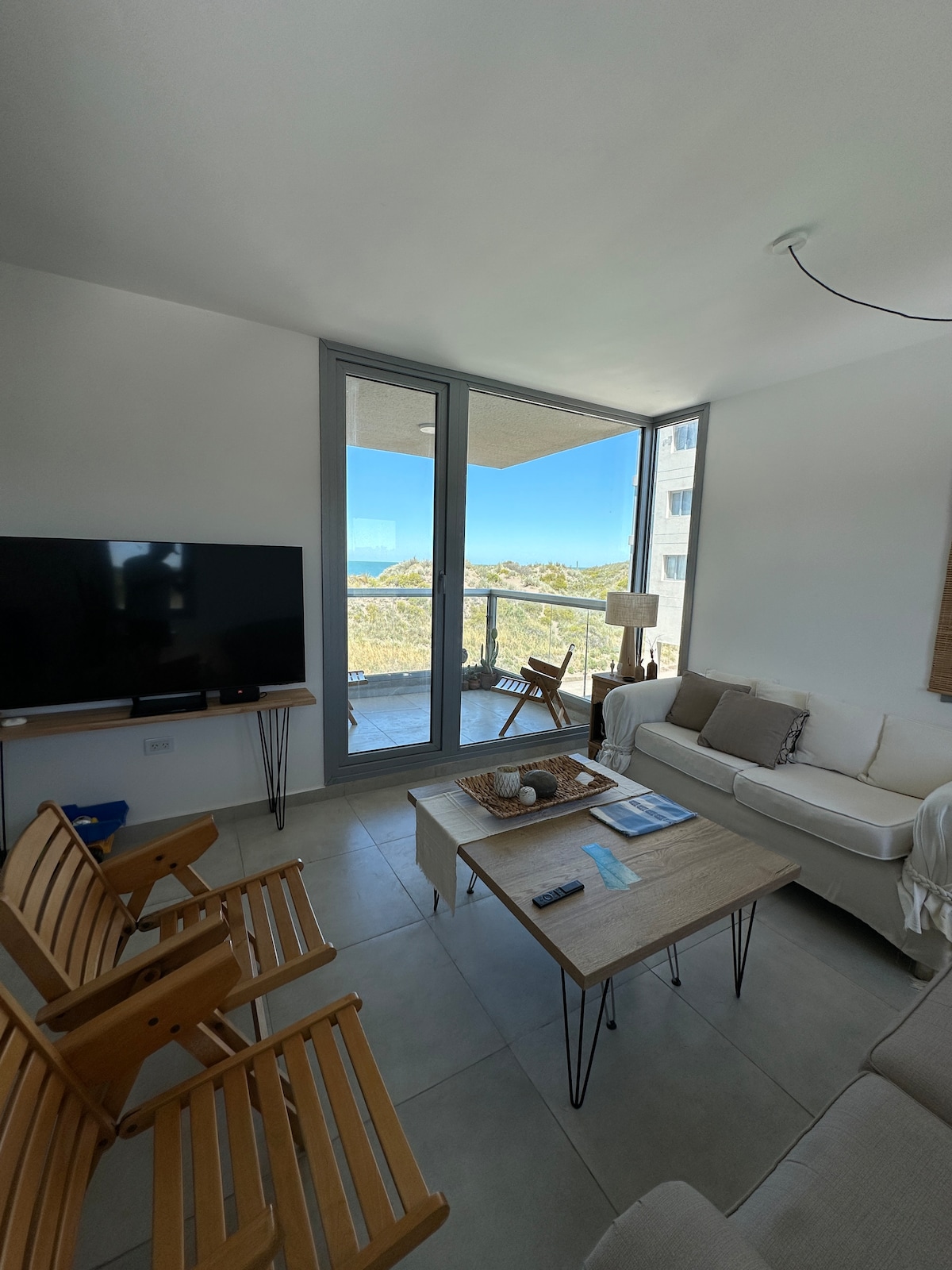 Relajate en este alojamiento único y tranquilo. Departamento a estrenar frente a la playa y con vistas al bosque. Ideal para disfrutar el mar y la naturaleza de sol a sol y descansar en un ambiente confortable. Detalles que harán de tu estancia una experiencia inolvidable: *Aire Acondicionado. Calefacción central. Wifi. Dos smart TV (uno de 50”). Heladera con freezer. Microondas, Lavarropas. Pava eléctrica. *Elementos para playa: Reposeras, sombrilla, heladera portátil y carro transportador.