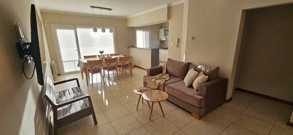 Departamento a Estrenar con Parrilla y WiFi Este moderno departamento es perfecto para familias o grupos de amigos. Cuenta con 2 dormitorios, 1 cama matrimonial y 3 individuales (en cama nido), cocina equipada con horno y heladera con freezer, amplio living comedor con TV por cable, baño completo, patio con parrilla y estacionamiento privado. Además, incluye WiFi. A 3 cuadras del mar. Todo en un espacio completamente nuevo, pensado para tu comodidad. ¡Te esperamos para una experiencia única!