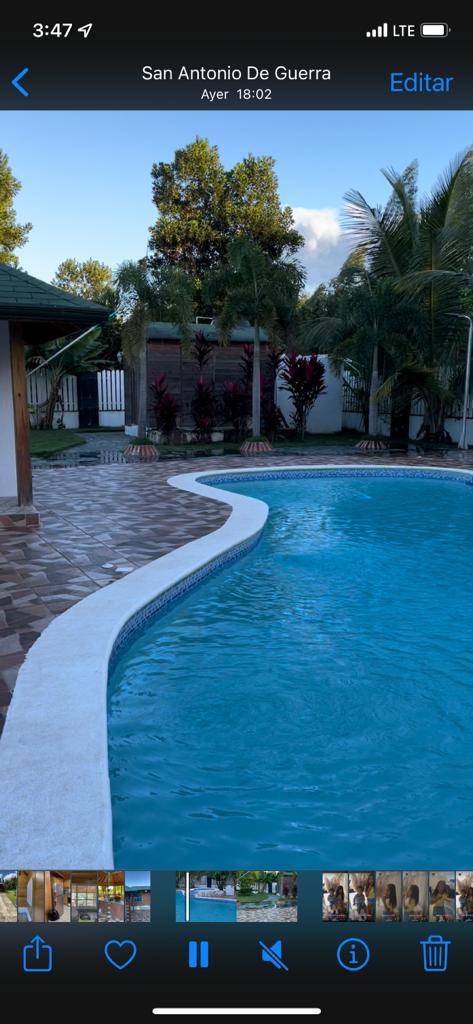 Lejos del bullicio de la ciudad a 35 minutos de Santo Domingo. Rodeada de hermoso verdor y paisajismo. Experiencia de campo a su alcance. Cuenta con Área de terraza techada abierta grande con fregadero, BBQ gas, frizer, diferentes espacios para compartir, bailar, comer. Área de piscina grande con muebles exterior y regadera, cuenta con 2 baños uno para damas y otro caballeros Estilo campestre con muchas áreas verdes y de recreación, columpios. Billar, cuarto de juego de niños.