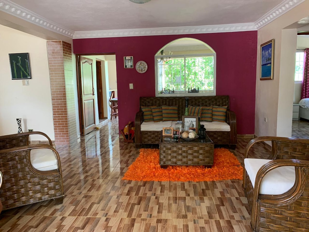 Finca con todas las comodidades a 25 minutos de Santo Domingo. Puede ser para estadías largas o cortas donde caben 12 personas (4 habitaciones con aire más un sofá cama en la sala con abanico de techo) o para pasadias de grupos (confirmar cantidad de personas antes de reservar). Tendrá a su acceso la casa, el gazebo con baño completo, wifi, Tv, Billar, equipo de música, piscina, jacuzzy con calentador, bbq de carbón, cancha de basketball, mesa de ping pong, juegos, amplios jardines y la granja