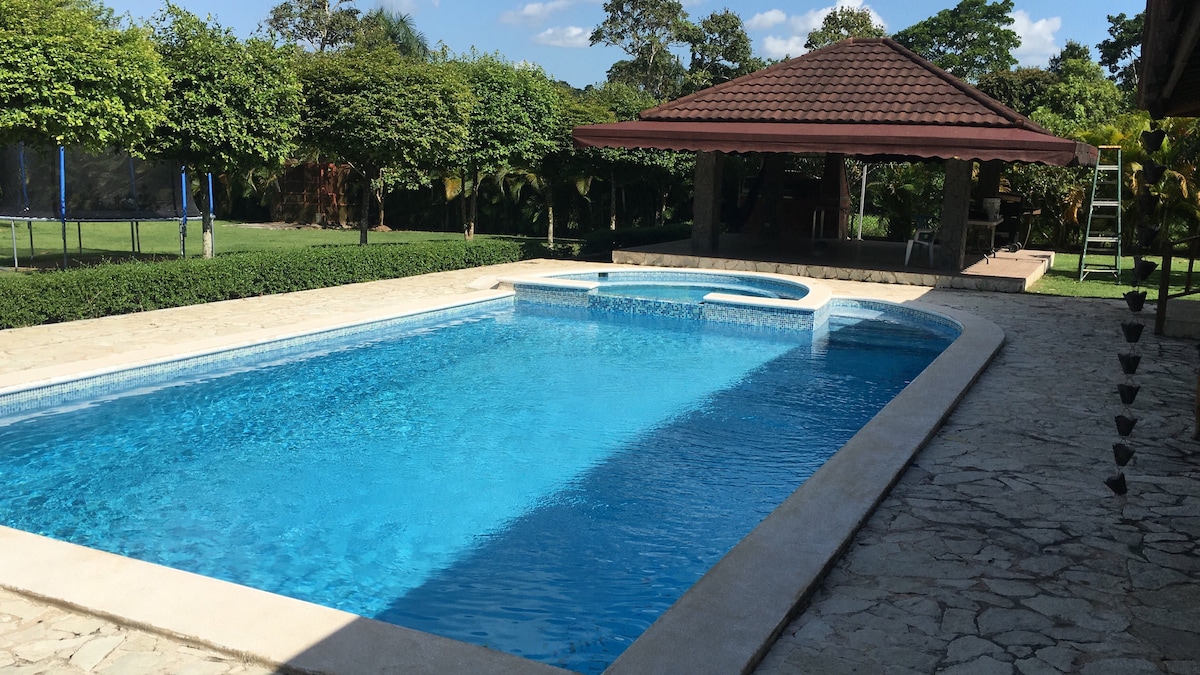Finca con todas las comodidades a 25 minutos de Santo Domingo. Puede ser para estadías largas o cortas donde caben 12 personas (4 habitaciones con aire más un sofá cama en la sala con abanico de techo) o para pasadias de grupos (confirmar cantidad de personas antes de reservar). Tendrá a su acceso la casa, el gazebo con baño completo, wifi, Tv, Billar, equipo de música, piscina, jacuzzy con calentador, bbq de carbón, cancha de basketball, mesa de ping pong, juegos, amplios jardines y la granja