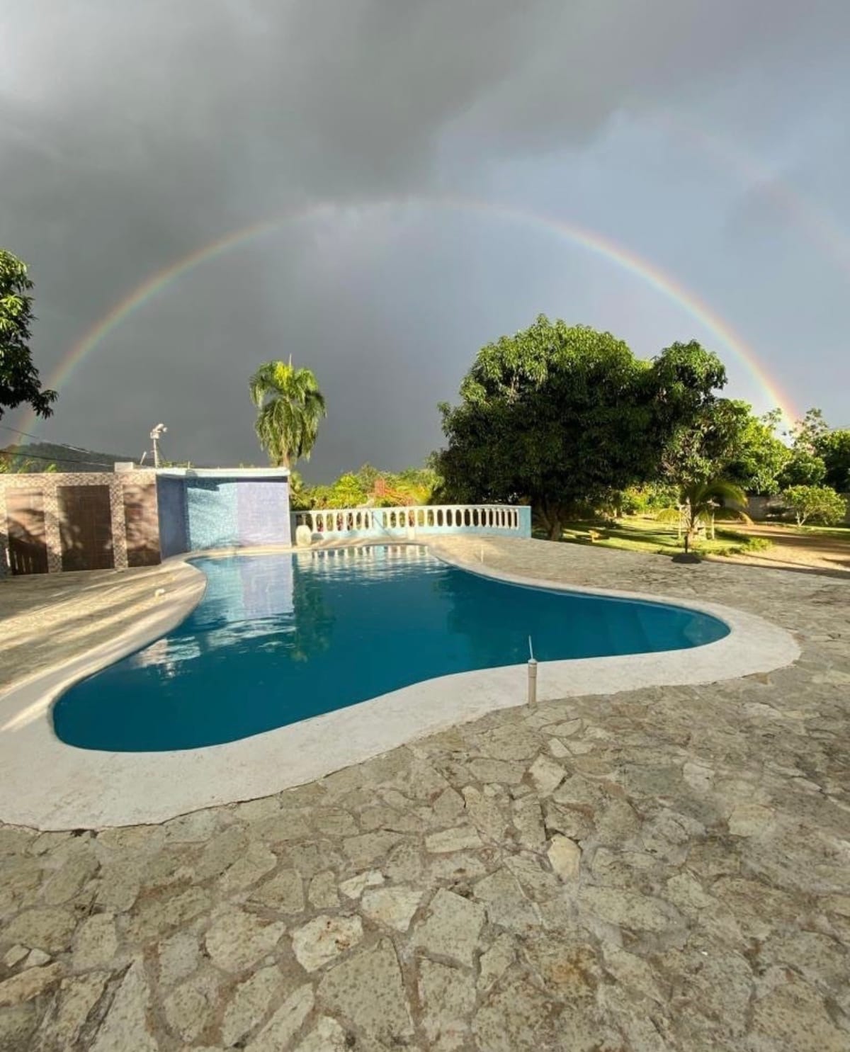 Crea recuerdos inolvidables en este alojamiento único y familiar. Esta propiedad de mucha vegetación es perfecta para desconectarse de la rutina y vivir una experiencia relajante. parqueo para 7 vehiculos, hermoso patio, piscina, mini cancha futbol para niños, area de bbq. amplia terraza con tv,karaoke, bocina, mini nevera,agua caliente,planta electrica, calles totalmente asfaltadas, A solo 20 minutos del distrito nacional.