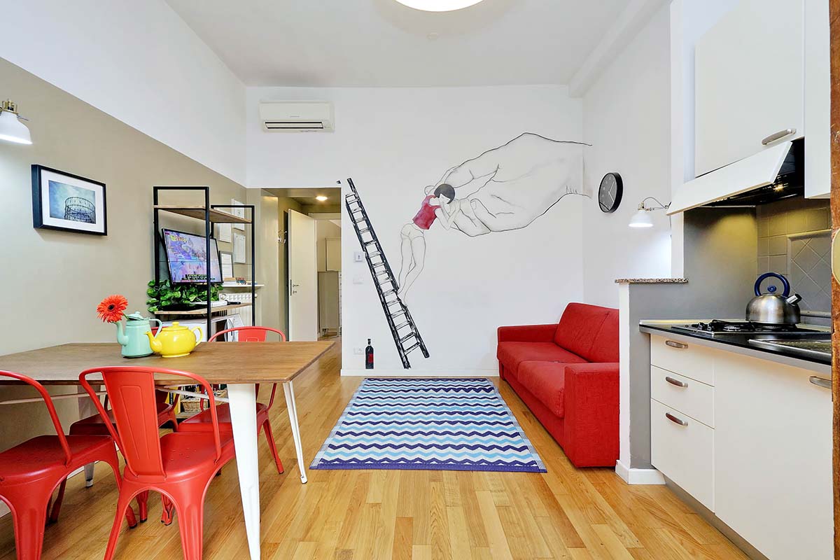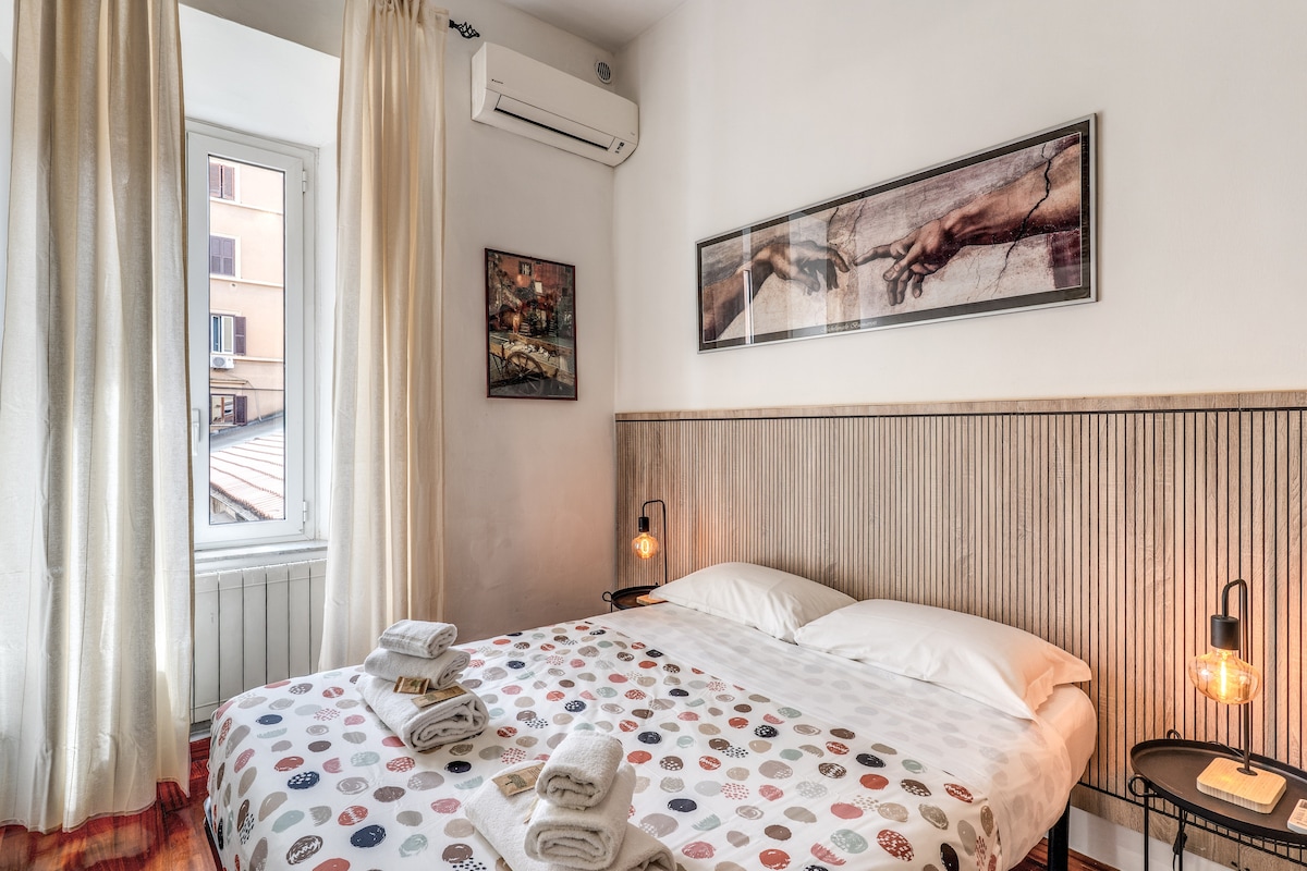 A newly renovated house, in that Trastevere where all the Romans would like to live. Between the church of “Santa Cecilia” and that of “San Francesco a Ripa”. Immersed in history, in a mood of peace and poetry. Let yourself be overwhelmed by the heart of Rome in an apartment where light and the sky reign supreme, where you can enjoy a breathtaking view of the Aventino Hill and with a 2-minute walk, among unforgettable characteristic alleys, you can reach all the attractions.
