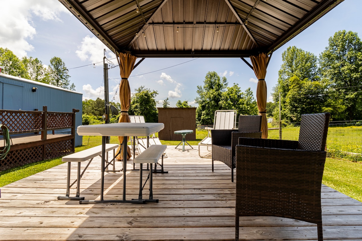 Come enjoy a cozy getaway in Sewanee! You’ll love this space because of the location, amenities, and cleanliness. This home is best suited for couples, small families and those traveling with pets. This mobile home has an open layout. It’s 700 square feet and sits near the woods, off a back road, bordering a horse pasture and trees. It has a spacious fenced-in yard. Located 7 minutes off I-24 for those driving thru, and a short walk or drive from Mountain Goat Trail if you want to walk or jog.