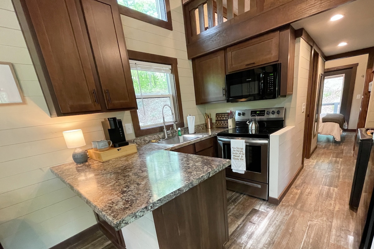 Tucked into the woods and a short walk to the lake, this tiny home sleeps 6 & is a safe haven where you can breathe deep and enjoy the beauty & respite of nature. The Retreat at Water's Edge is a gated tiny home community that combines serene mountain woodlands with luxury tiny home living. The area boasts incredible hiking trails, waterfalls, unique restaurants, and the stunning University of the South in Sewanee. Sweetens Golf Club is only 25 mi. Day trips to Nashville, Chattanooga & Atlanta!