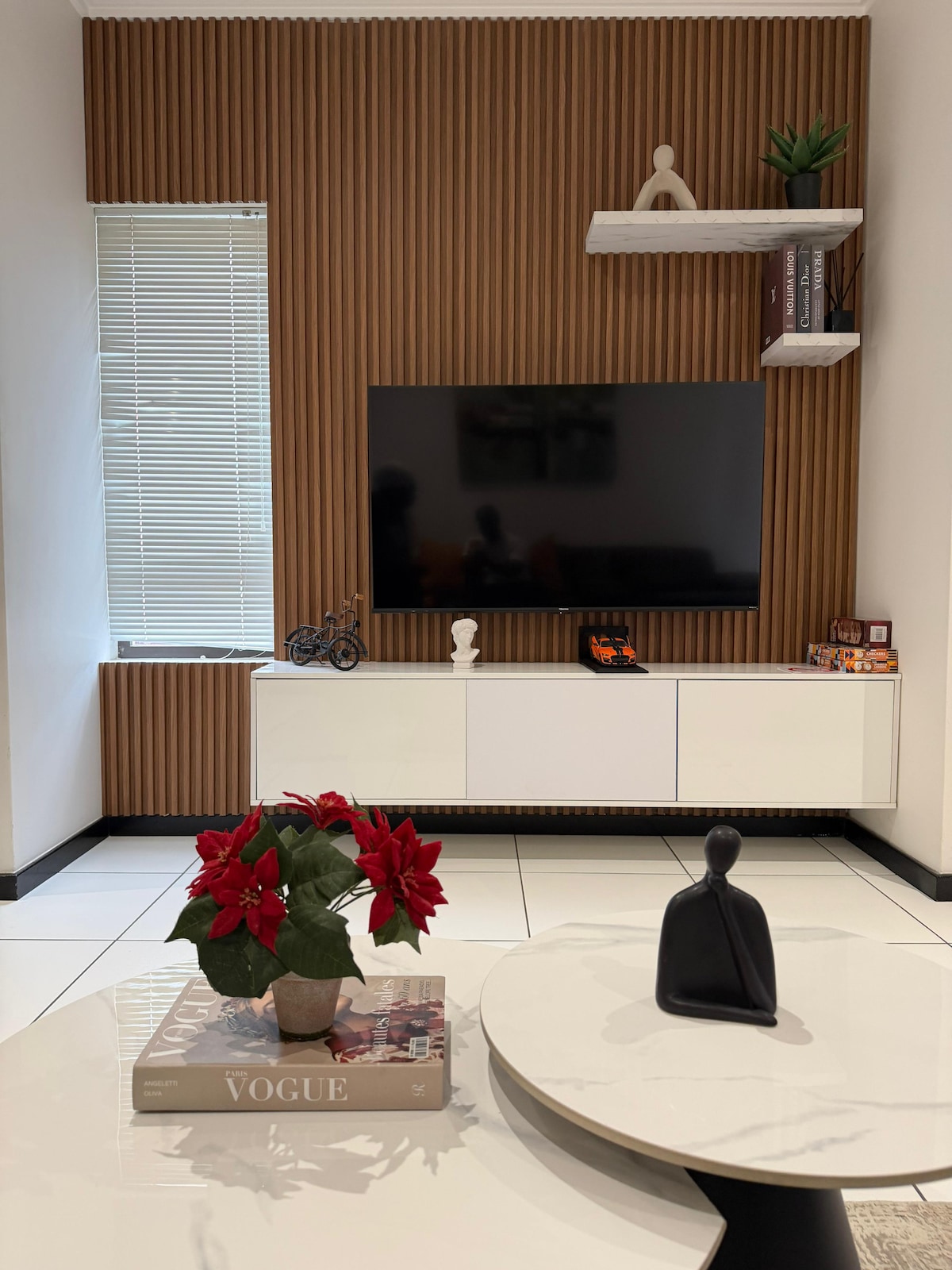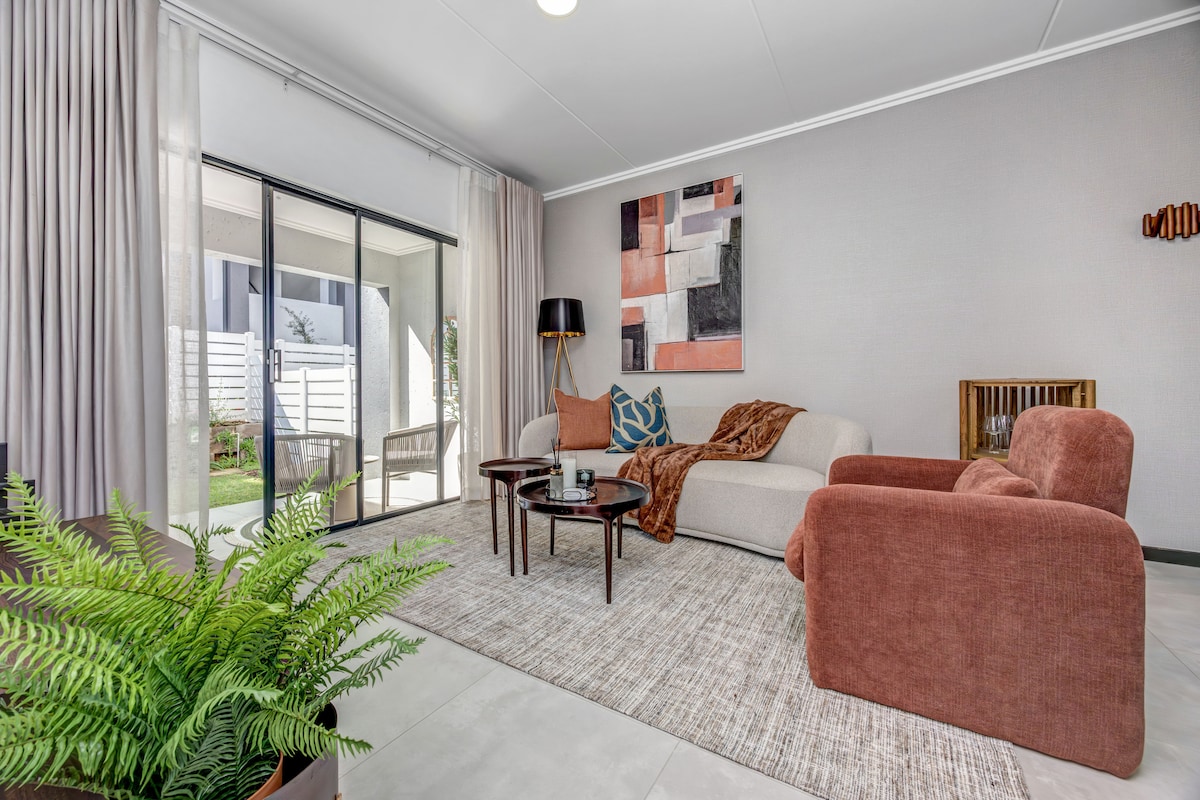 We welcome you to relax in our calm and luxurious space situated in a quiet section of Fourways. The apartment is uniquely and tastefully designed with amenities that radiate style and comfort. Treat yourself to this stunning apartment with a queen size bed, a fully equipped kitchen and a modern bathroom. Unwind on the patio or on the couch and enjoy a TV with Netflix and Youtube. The apartment has electricity backup that runs the TV and the Wi-Fi. Book your stay today and indulge in luxury.