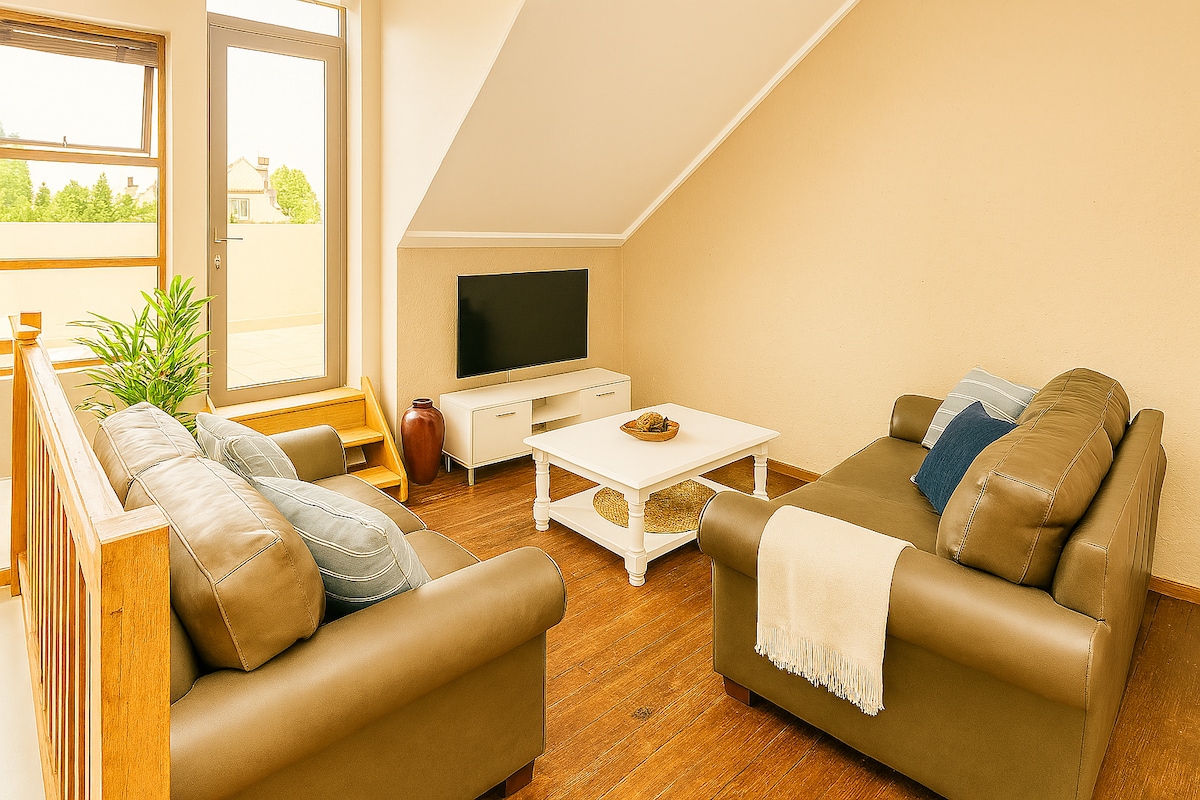 Welcome to your serene city escape!This beautifully designed 2 bedroom ground-floor apartment offers comfort, elegance & convenience.The master bedroom features a queen bed, and the guest bedroom has a double bed,both with plush linens & electric blankets.The modern bathroom boasts a spacious shower and a relaxing tub.Enjoy the fully equipped kitchen and stylish open-plan living, adorned with African-inspired art.Step outside to your private garden—a tranquil oasis for unwinding after exploring.