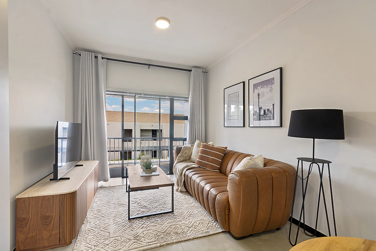 We welcome you to relax in our calm and luxurious space situated in a quiet section of Fourways. The apartment is uniquely and tastefully designed with amenities that radiate style and comfort. Treat yourself to this stunning apartment with a queen size bed, a fully equipped kitchen and a modern bathroom. Unwind on the patio or on the couch and enjoy a TV with Netflix and Youtube. The apartment has electricity backup that runs the TV and the Wi-Fi. Book your stay today and indulge in luxury.