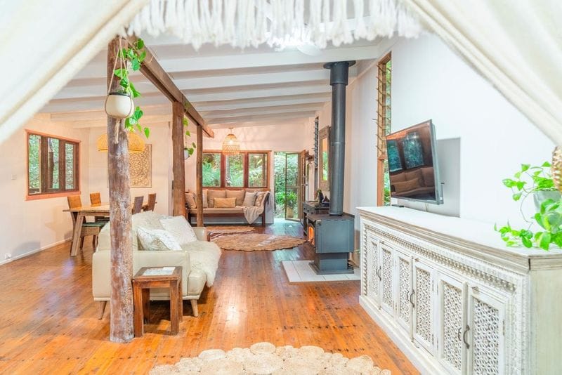 Welcome to Tallowwood House at Koru Sabi Lodge where you can relax in your own private sauna; stargaze from the outdoor bath or get cozy inside by the fireplace. See more pictures and videos on our IG: @koru_sabi_lodge If your dates aren't available, book our sister cabin, Pine House on the same property. You are: - 5 mins to the General Store & Natural Wine Shop - 15 to the nearest beach - 20 to Brunswick Heads - 30 to Byron Bay - 40 to Gold Coast airport
