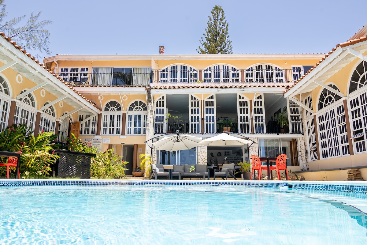 Welcome to the Irie Inn! A truly incredible value hotel for those who want to be in the vibrant heart of Montego Bay, "The Hip Strip". We are a 5-minute drive from MBJ Airport, stumbling distance from Margaritaville, a short walk from the world renowned Doctor's Cave Beach and Harmony Beach Park. Our onsite manager, Pauline, is happy to share her tips for experiencing Jamaica to its fullest. We have free Wi-Fi, solar hot water, and cold A/C