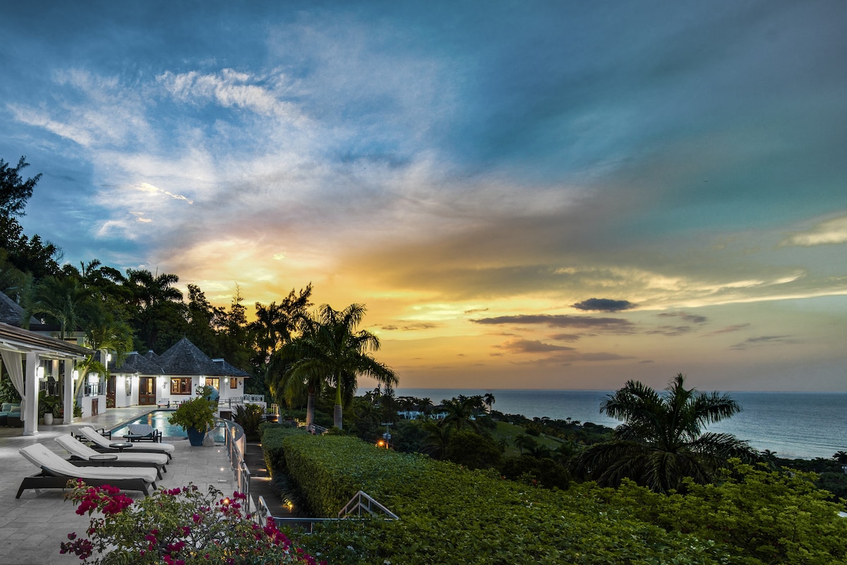 Villa Indigo- majestic, panoramic views of the Caribbean Sea and lush valleys. Practically a private resort unto itself, fully staffed with butlers, a chef and sous chef, and housekeepers anticipating your every need. Peloton gym, media room, mahogany bar. Villa and Bamboo Cottage each have five en-suite bedrooms, infinity pool and bar. Terraced estate lush gardens, koi ponds, a hot tub, driftwood playhouse. Membership to world-class Half Moon luxury resort and three championship golf courses.