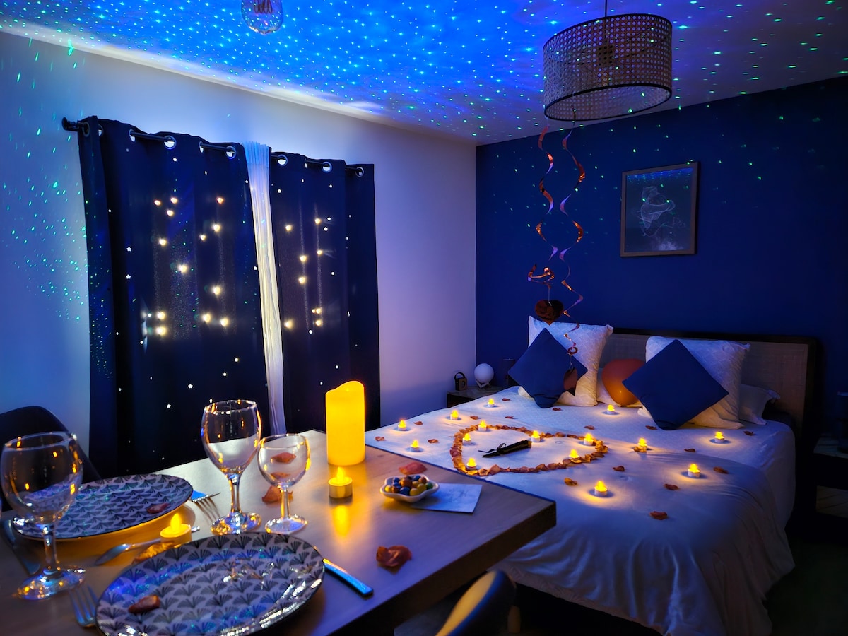 Maison entière privatisée de 50 m² sur deux niveaux, idéale pour une escapade romantique à deux en Ardèche. Profitez d’un spa privatif 3 places avec 50 jets et luminothérapie, d’un salon cosy avec ciel étoilé et d’une chambre avec lit Queen size et kitchenette équipée. Entrée indépendante pour une intimité totale. Notée 4,99⭐ par près de 500 couples. Tout est pensé pour ralentir, se retrouver et vivre un moment inoubliable à deux.