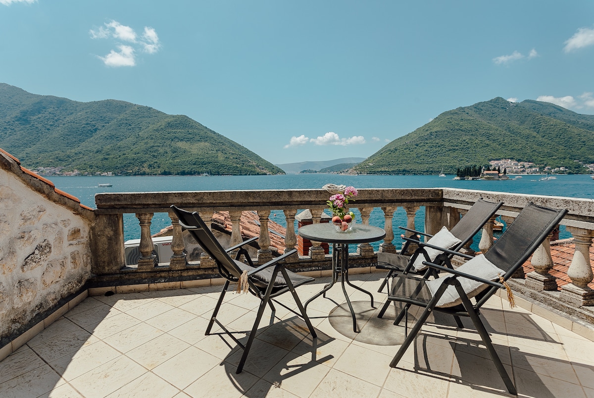 The house which is literally ten steps away from the sea. Inside the spiral staircase leads to the top floor living area, which lead to an open terrace with a view looking directly to the Island ‘lady of the rock’ Public transport: bus service between Kotor and Risan The nearest airport is Tivat in Montenegro (about half hour drive from Perast) There are many restaurants along the Riviera.