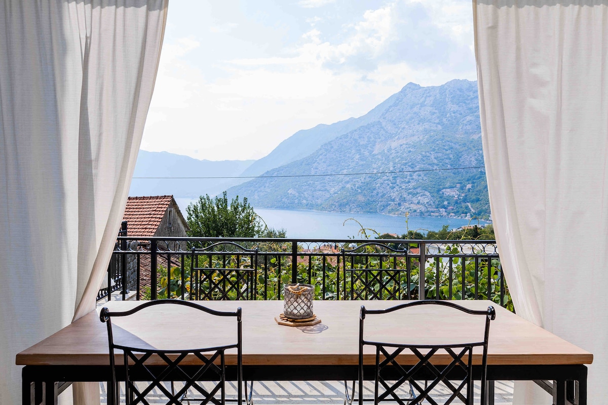 A very cosy and bright apartment in the heart of Prčanj, a picturesque village of the UNESCO Heritage Site Bay of Kotor. The apartment offers a panoramic view of the bay (This is just, WOW!) and a spacious private terrace allows you to enjoy the moment. There is a shared swimming pool at your disposal. Free parking is in front of the building. It takes you only 5 minutes on foot to access the waterfront and dive in. There are also various authentic restaurants and a shop within walking distance.