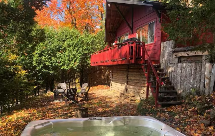 Kick back and relax in this calm, stylish space. Escape to Chalet Perdu, a cozy cabin nestled in the forest, perfect for a tranquil retreat. With two charming bedrooms and a full bathroom, this secluded hideaway offers the ultimate blend of comfort and nature. Relax by the warmth of the fire pits, soak in the private hot tub under the stars, and enjoy the peace of the surrounding woods. Chalet Perdu is just minutes away from a variety of activities, making it an ideal destination.