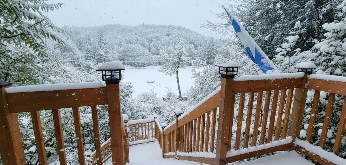 WINTER or SUMMER...... well-insulated with a gas fireplace & electric back up, this is a perfect cottage for nature lovers! 20-30 min. to Sutton, Bromont or Owls Head ski areas.Enjoy this unique and tranquil country get-away with close proximity to the villages of Sutton & Knowlton. We offer a beautiful view, toboggan hills:) , snowshoeing, & x- country skiing space! Nature at its finest!