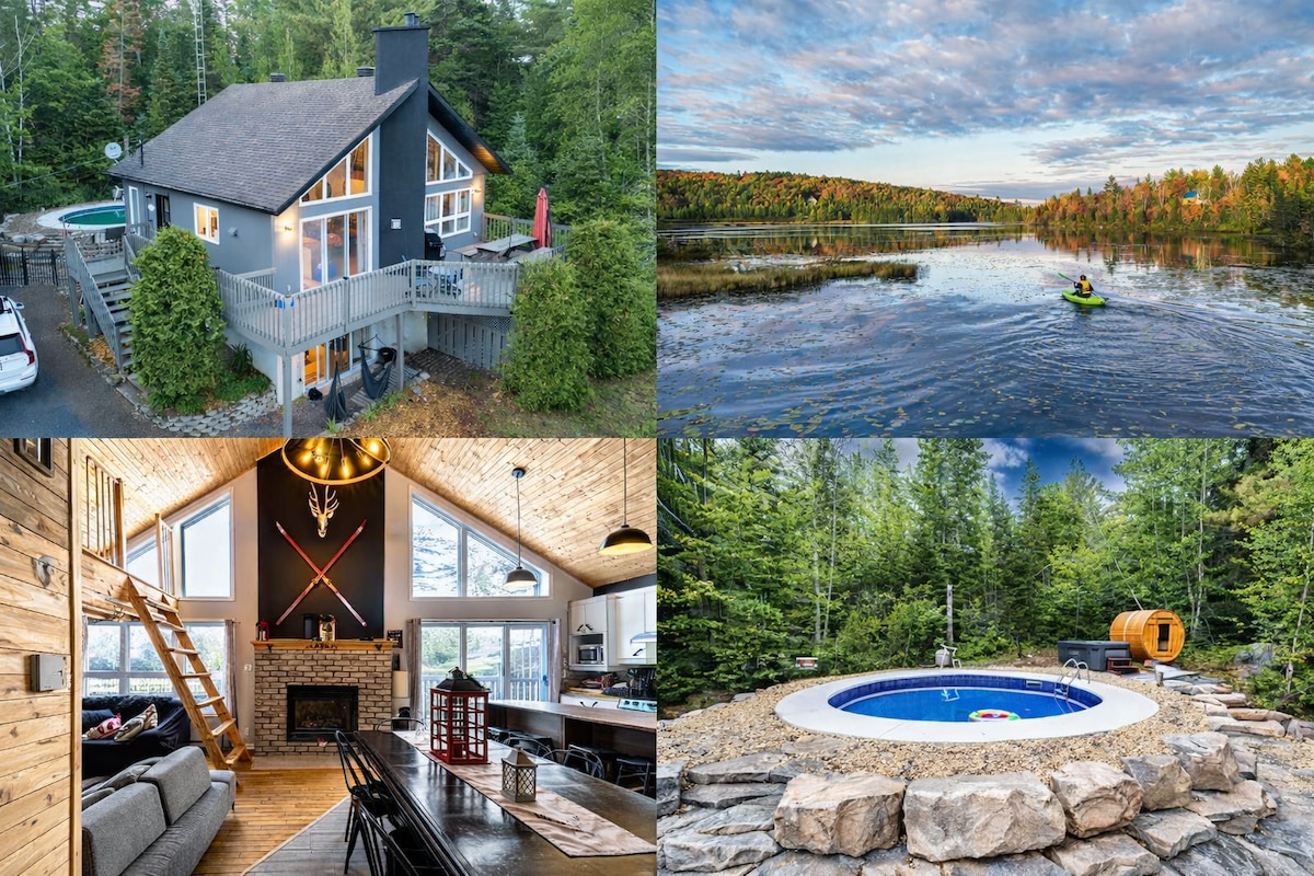 Waterfront Luxury Villa with 6 spacious bedrooms, 2 wood fireplaces. The large outside terrace accompanied by sofas and terrace table with a SPA and the large backyard make it the perfect place to relax, and enjoy tranquillity of a home in the woods and fantastic view on the lake Pontbriand. 45 minutes from Laval, 55 minutes from Montreal. We are located in the heart of Rawdon in the Lanaudière region.