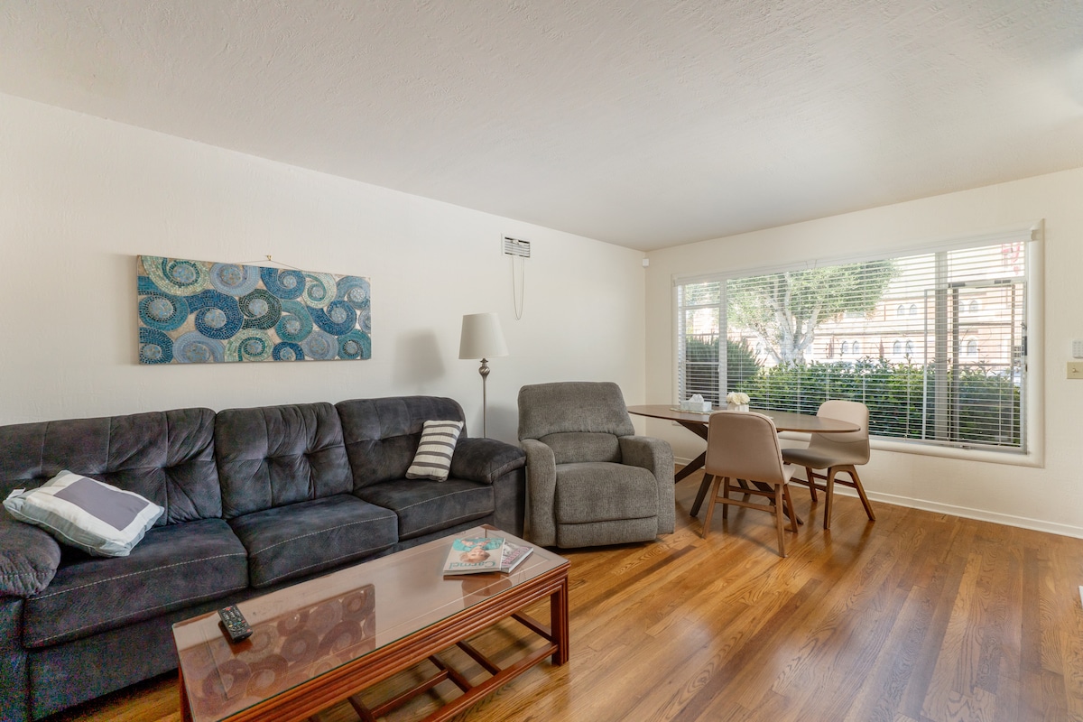 Cozy Seaside cottage conveniently located in a friendly neighborhood in Seaside. Our slice by the sea is close to the beach, Monterey fairgrounds, Laguna Seca Raceway and more! Enjoy a quiet stay in Monterey bay with a private driveway and patio area as well as a full laundry room and fully stocked kitchen. New carpet and a recently renovated bathroom are an added plus! Walking distance to grocery stores, Walgreens, and local restaurants. Perfect retreat for a couple or just you!