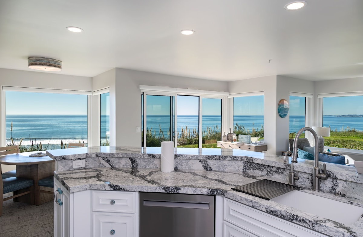 Enjoy beautiful sunsets from this newly remodeled North Bluff Villa, with crystal clean beach decor, comfortable king size mattresses, plus a beautiful queen size sofa sleeper. High end stainless steel appliances (in case you feel like cooking) Short walk to restaurants, Seascape Village Shopping, pool/hot tub, trail to the beach. Covered parking EV available, elevator takes you to the 2nd floor. Enjoy listening to your own tunes thru a custom sound system. TV w/ Netflix. Internet access.
