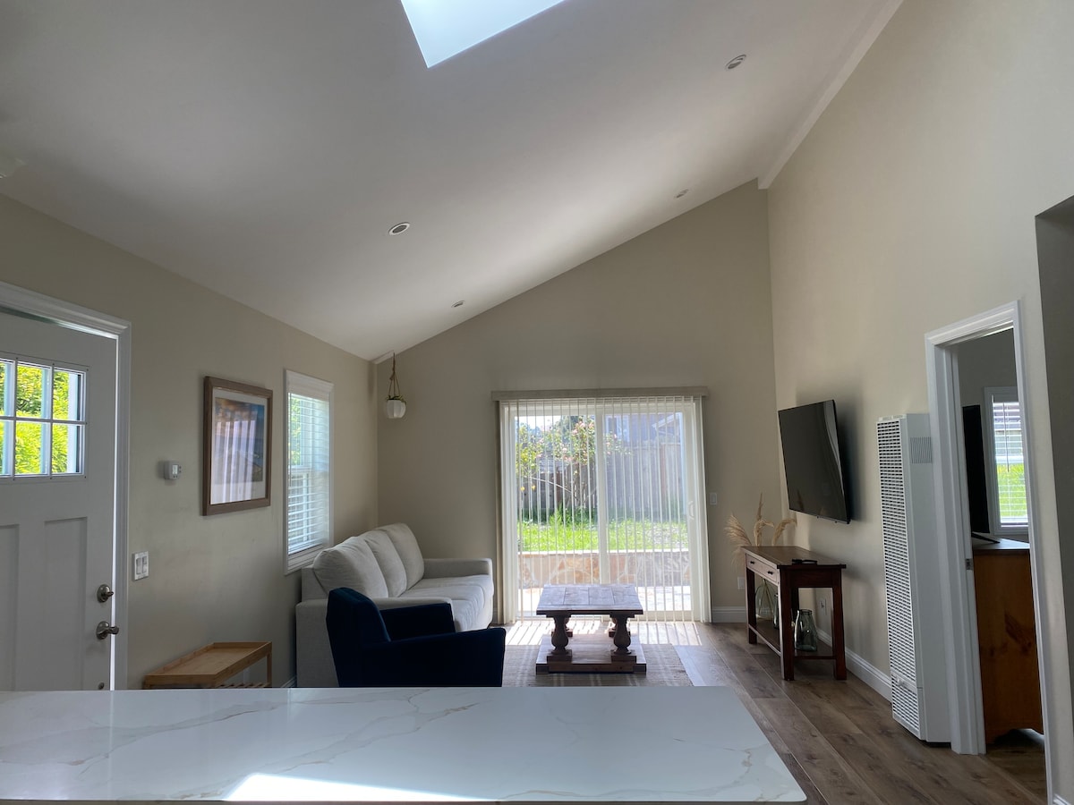 Great S. Salinas neighborhood within walking distance to Old Town. In Old Town you will find great restaurants, places to get a drink, nightlife, and movie theater. Centrally located, 100 miles to San Francisco, 15 miles to Monterey Peninsula (Fisherman's Wharf, Aquarium, Pacific Grove, & Carmel). The unit is brand new. Cozy, sunny, and spacious, with lots of privacy. There is a Microwave, Keurig, and mini-fridge (no freezer) available for use. There is NO stove, oven, or air-conditioning.