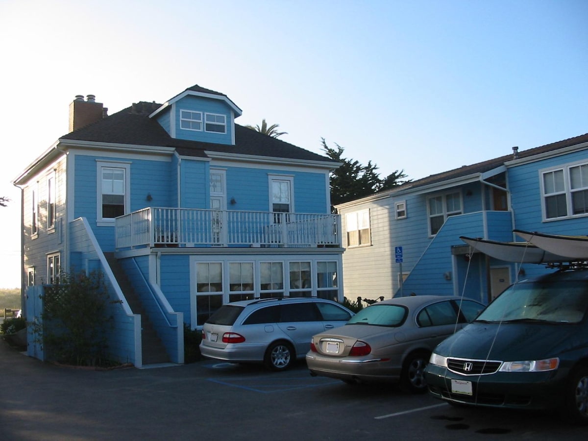 Arbor Room is decorated in slate blue and cream. It provides the perfect seat to watch the waves crashing below through 3 windows with panoramic views of the Monterey Bay, rocky coastline, and mountains. Enjoy the ambiance of this room created by the pleasant eastern and southern exposures. • Rooms are sanitized following the Clean+Safe protocol outlined by Calif Lodging Assoc. Due to COVID-19 there is NO interim maid service. • Complimentary breakfast • Restaurants very close to Inn