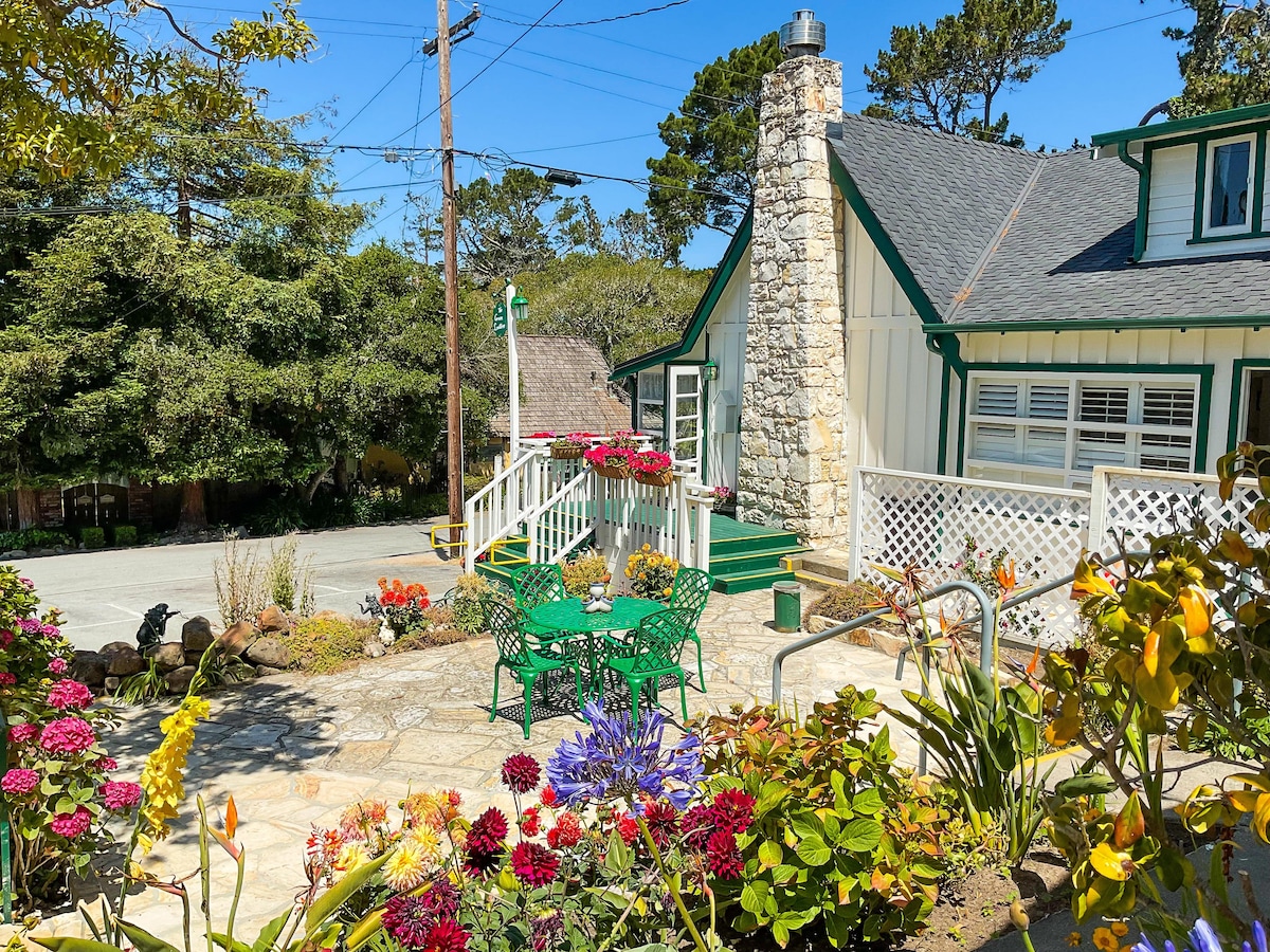 Escape the hectic pace of everyday life when you stay at our charming seaside Inn. Our peaceful grounds are just 777 steps from world-famous Carmel Beach and one block from downtown Ocean Avenue. Surrounded by mature trees and serene gardens, accommodations and amenities at Carmel Green Lantern Inn promise cozy comfort set to the sounds of the Pacific Ocean.