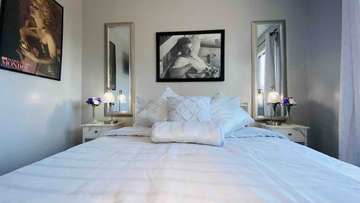 Welcome! With the Glendale Galleria & Americana at your foot step, escape the hustle and bustle of the city while still resting your head in a residential oasis. This Los Angeles property boasts sleek, warm and quintessential Mid-century modern decor with personal touches from my own photography background. From the moment you step foot into this 2 bedroom, 1.5 bathroom space The Contemporary Haven welcomes you with the perfect balance of hotel-like amenities and a homey environment.