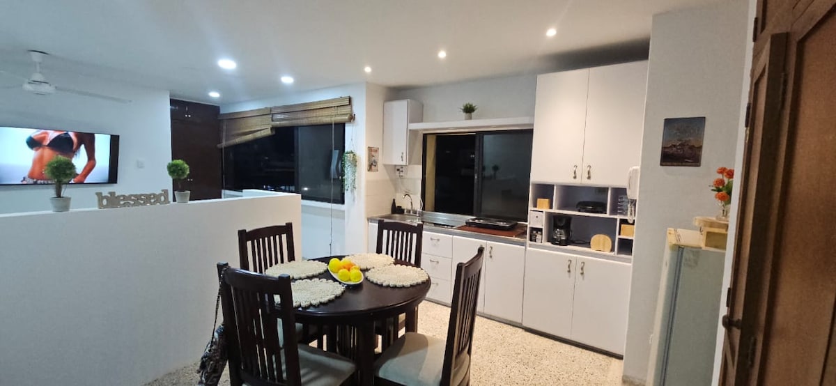 Apartamento ubicado estratégicamente para vacaciones y viajes de negocio en Monteria, Córdoba, cerca al Place Mall, Home Center y a pocos pasos del CC Buenavista donde encontrarás todo tipo de entretenimiento social y comercial. El alojamiento ofrece una terraza donde puedes observar un bello paisaje que contrasta entre el campo, la ganadería y la ciudad, sala de estar con TV pantalla plana, cocina totalmente equipada, Wifi y parking privado bajo techo gratis.