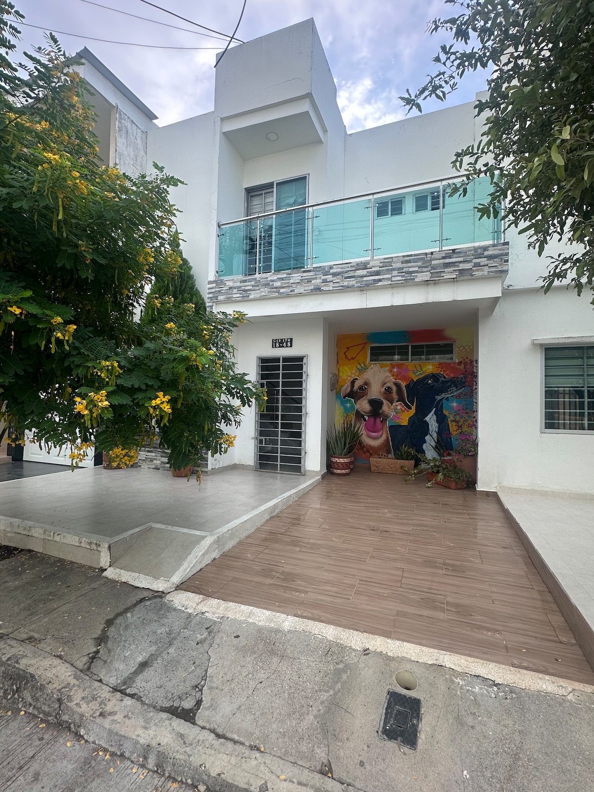 Casa moderna de tres pisos, fresca, amplia y llena de personalidad, ideal para descansar y sentirse como en casa. Cuenta con 3 habitaciones cómodas, 4 baños, sala de TV, cocina, patio interno que aporta luz y ventilación natural, y un solárium perfecto para disfrutar del atardecer En la entrada destaca un mural artístico en honor a mis perros, los verdaderos dueños de la casa, que le da un toque único, alegre y lleno de buena energía. Ideal para familias, parejas, grupos o estancias largas.