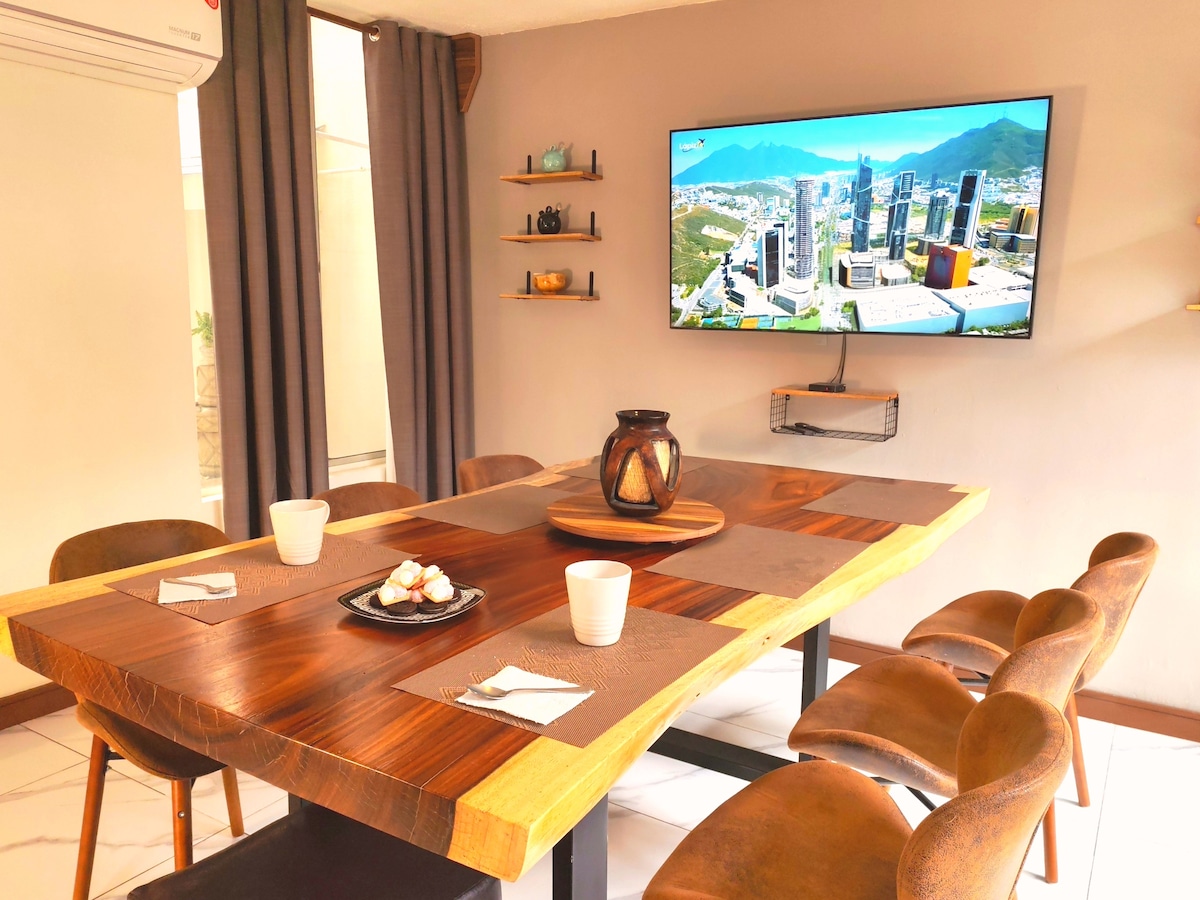 Espacioso departamento equipado en Distrito Tec. Con muy buenas vialidades tanto para acceder al sur como hacia el centro de la ciudad y el area de parque fundidora. El barrio es tranquilo y seguro y cuenta con muchos restaurantes cercanos con una amplia variedad de cocina. tiendas de conveniencia en la zona con muy facil acceso