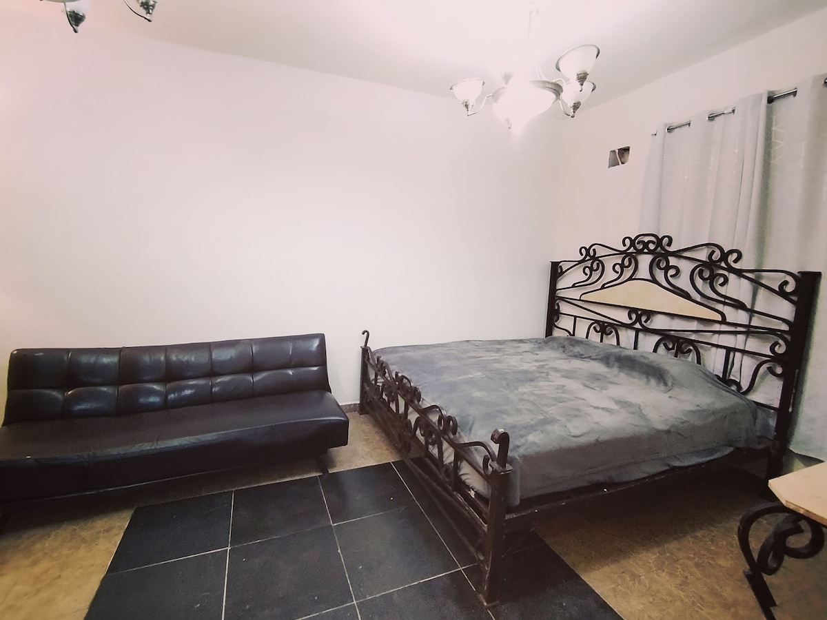 Tu familia estará cerca de todo si te hospedas en este alojamiento céntrico. Cómoda habitación en casa, cuenta con cama Kingsize, colchón y colchoneta memory foam. Cuenta con lámpara de noche, peinador y espejo, closet y cajones. Baño privado al interior del alojamiento con agua caliente. El espacio está disponible todos los días.