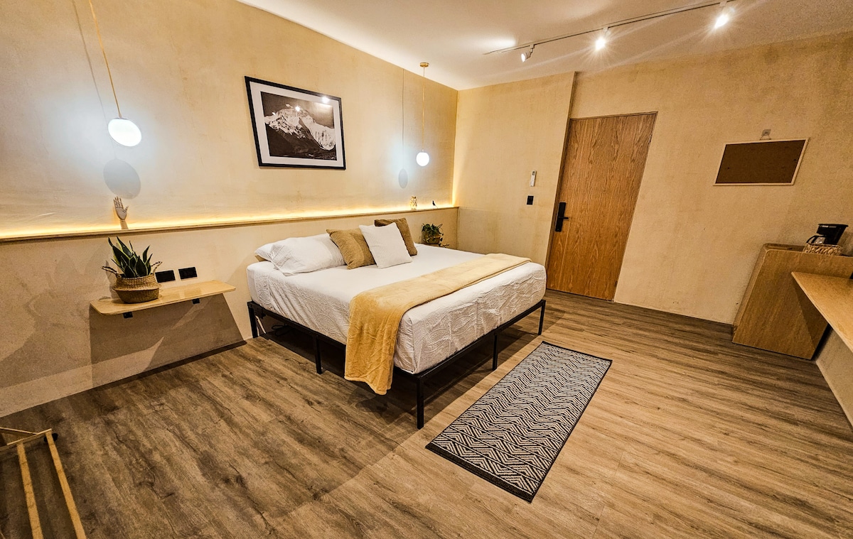 Disfruta de una experiencia única en nuestra acogedora suite, ubicada a solo unos pasos del histórico Barrio Antiguo y el vibrante centro de Monterrey. Está suite está cuidadosamente diseñada para brindarte el máximo confort. Perfecta para quienes buscan una estadía íntima en un ambiente relajante, rodeados de la cultura y energía de la ciudad.
