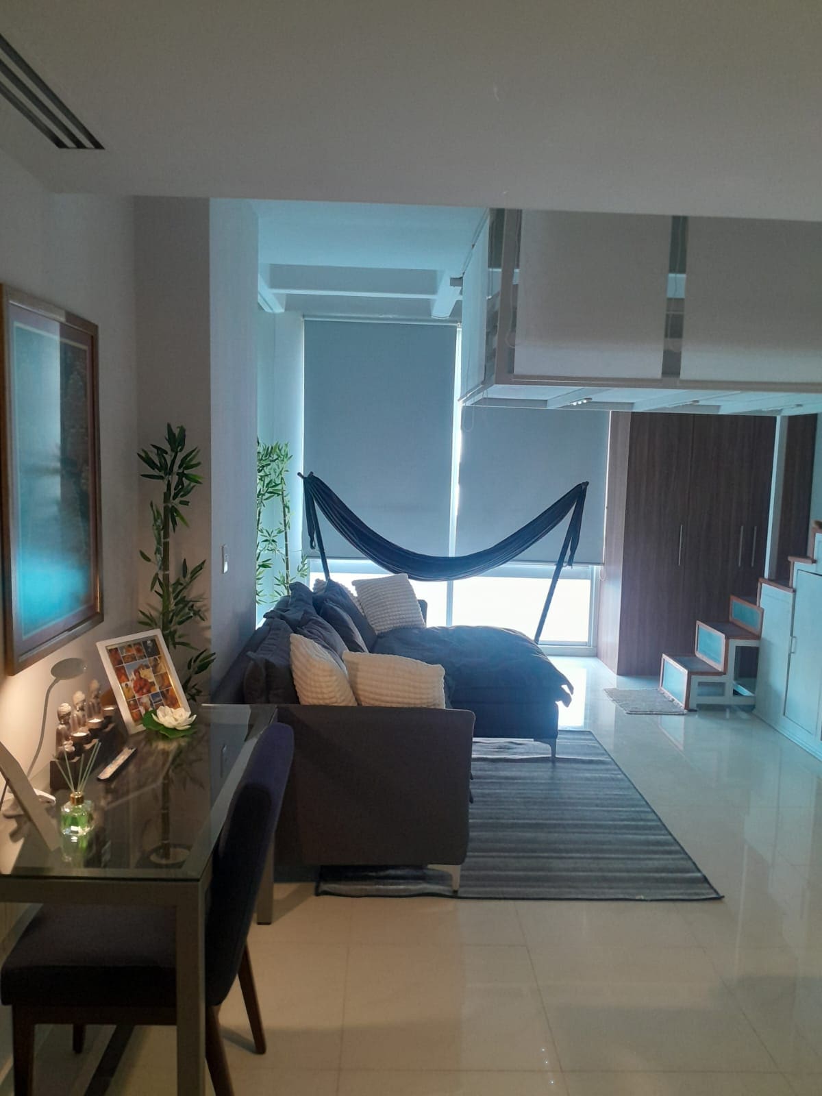 Tómate un descanso y relájate en éste tranquilo oasis , confortable con baño completo , cocina equipada , wiffi , una cama Queen size en tapanco , generando un espacio íntimo y separado del área de sala y cocineta , adicionalmente cuenta con 2 camas individuales tipo sofa , loft dentro del edificio Vitant , privilegiado frente al paseo Santa Lucia , y entrada al parque fundadora . donde encontrarás cafés, restaurantes y mas con amenidades del edificio de muy buen nivel ,