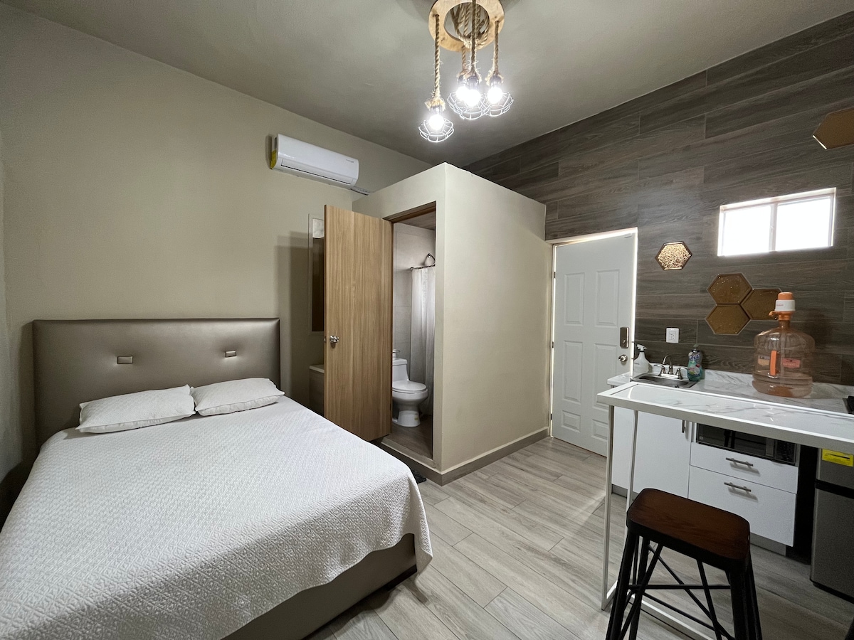 Newly remodeled industrial studio apartment located in the downtown area of Monterrey, 5 minutes by car from Parque Fundidora, Arena Monterrey, Paseo Santa Lucía and Cintermex. You can find the best in bars, clubs and restaurants that the Old Quarter offers just 9 minutes away. Completely private and equipped to make your stay very pleasant, whether for business or leisure trips. The kitchen is equipped to prepare a meal and feel at home. Easy access to bus and metro routes.