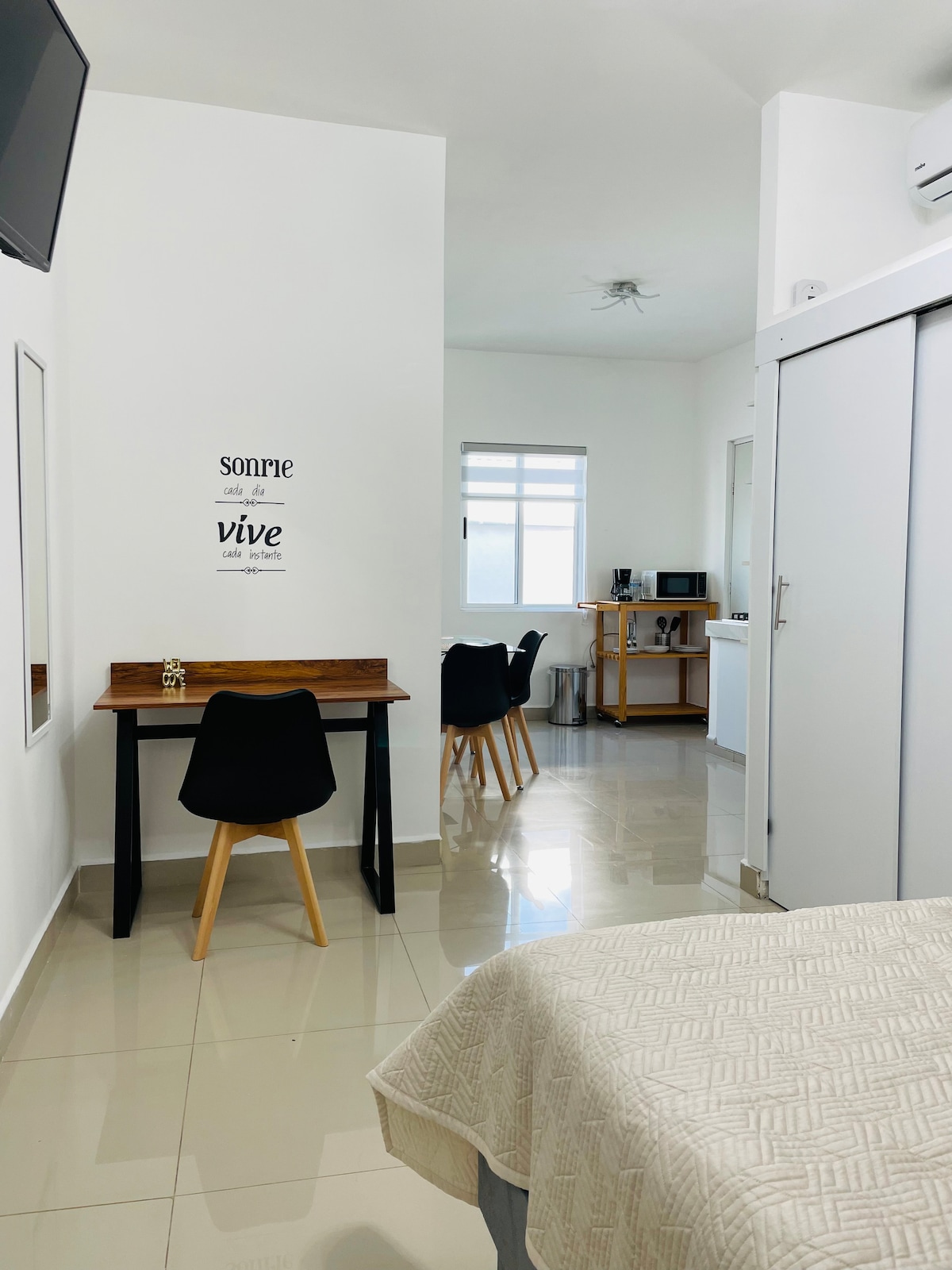 250+ 5☆ reviews and counting Small cozy space with minimalistic details located in the most calm and best connected part of Monterrey, near the Obispado. This place is perfect for professionals in a business trip, visa appointments, couples, small group of friends and medical tourists. The loft is accessed straight from the street; no lobby, no steps, no lift, no complications. Park at the front of the door, if necessary. Send us a message if you have any questions.