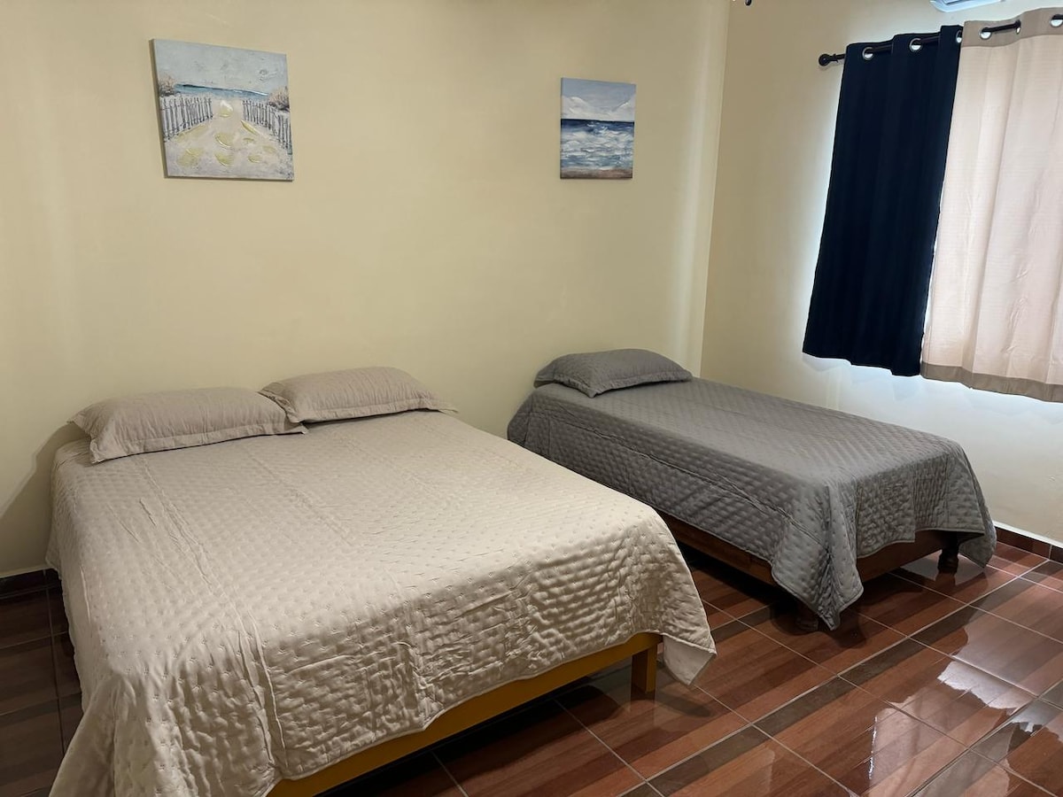 • Departamento en segunda planta. • Exclusivo para los huéspedes, si te gusta la privacidad es ideal para ti. • 1 Recamara con cama matrimonial y 1 individual con clima de 2 toneladas y abanico de techo. • Estancia con Sofa cama. •Pequeña cocina • Televisor de 40 pulgadas Smart • Disney • Tabla de planchar y espacio para colgar tu ropa. • Sanitario y agua caliente en la regadera. • Espejo de cuerpo entero