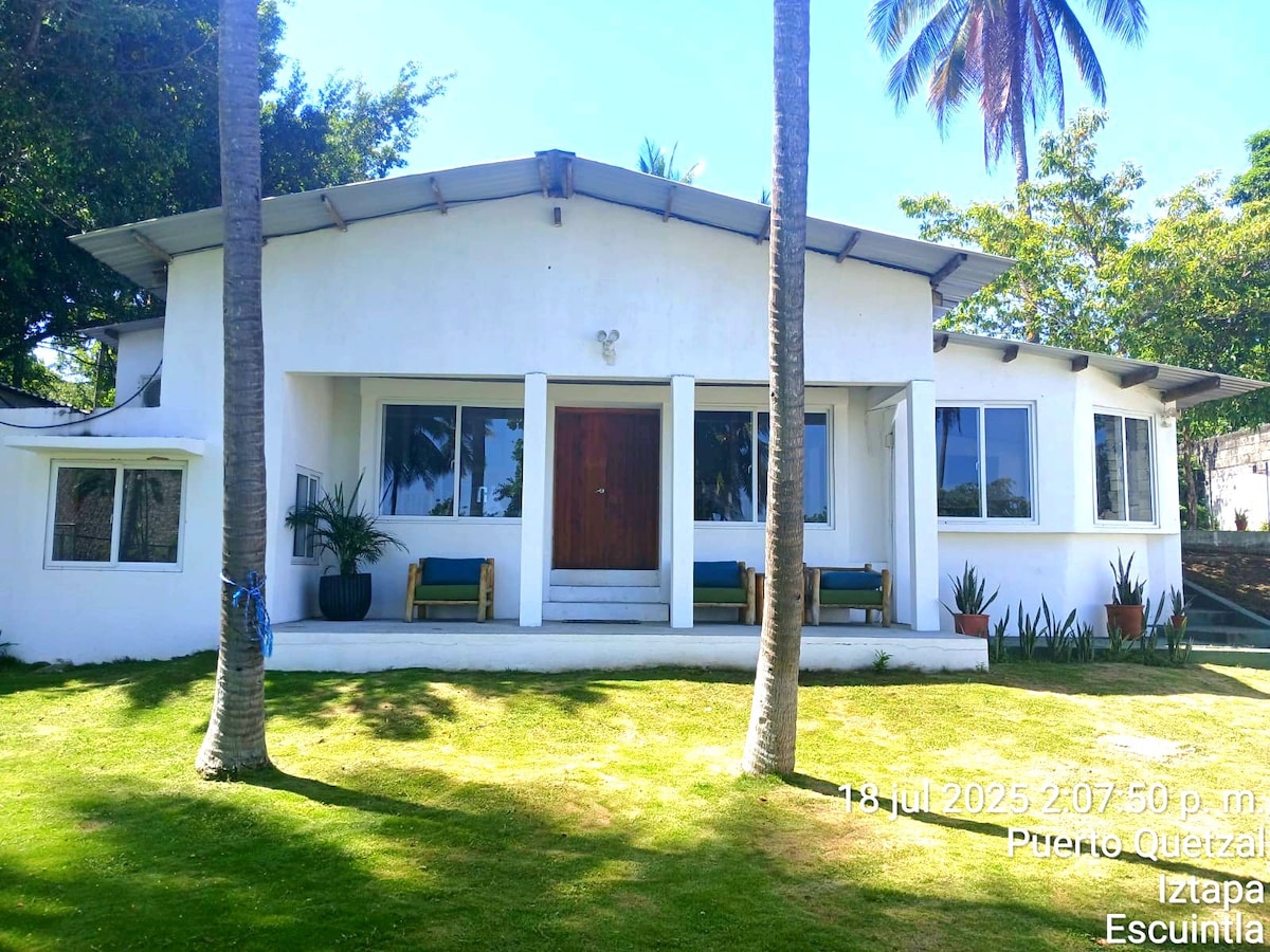 Disfruta de un tiempo especial en familia en las playas de Monterrico; en una casa familiar con PRIVACIDAD absoluta, cuenta con muro perimetral, portón de acceso, una bella y refrescante Piscina PRIVADA con un rancho de hamacas y 2 habitaciones en la casa con AC y 2 camas matrimoniales por habitación. 1 baño completo. 1 bungalow con baño privado y 3 camas. Amplia área social abierto a la piscina, cocina equipada. Muebles sala, comedor , cocina. Área social preciosa a piscina