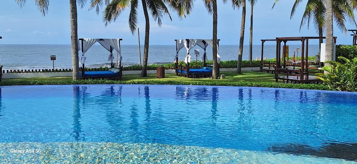 Villa vacacional en condominio frente al mar con más de 2,000 mts. de piscinas, isla, jardines y todo lo requerido para disfrutar la playa en familia.