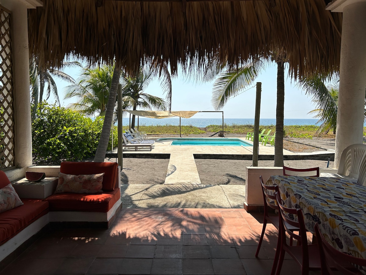 Casa de playa a 100 metros del mar, con piscina grande (11 metros de largo) de agua dulce. **CHECK-IN 10:00am - CHECK-OUT 3:00pm** Dormitorios con A/C, cocina equipada y parqueo privado. La casa esta circulada y se entrega completa con sábanas y almohadas limpias. No tiene ningún espacio compartido con otras personas. Pueden ingresar vehículos bajos sin ninguna dificultad. Ubicada en Km 5 carretera a Monterrico, cruzando el puente de Iztapa a Monterrico.