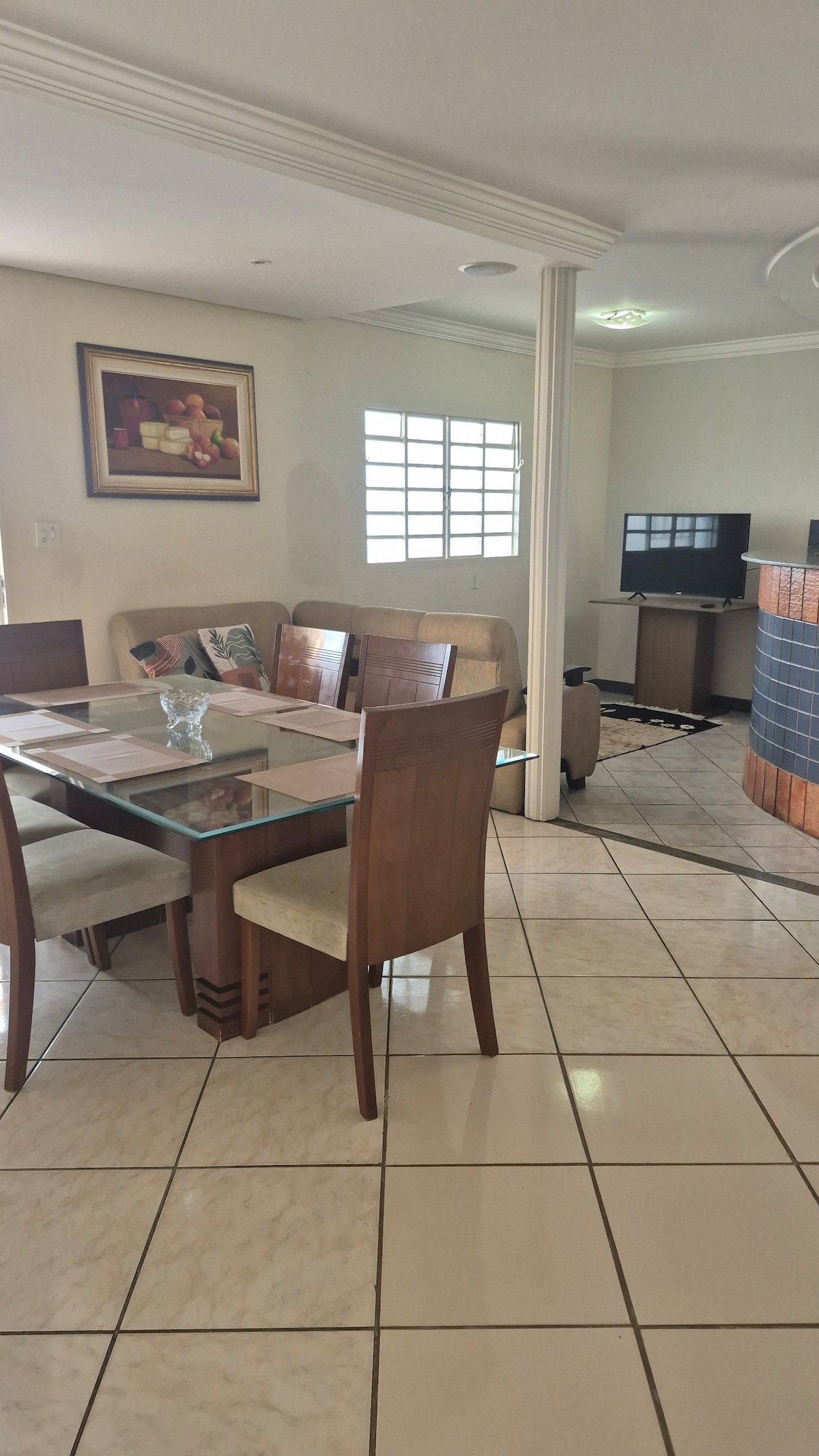 Garagem coberta para 2 carros.Contém panelas, eletrodomésticos, freezer e som na área dos fundos.NÃO fornecemos toalhas. check-in as 15hs/checkout as 12hs. Eventos/confraternização apenas para hospeds.Entrada monitorada. Composta de 3 quartos(todos com ar), porém os quartos seram disponibilizado conforme o n° de hóspedes, por exemplo:se a reserva for para 1 casal,ficará disponível apenas 1 quarto, se for para 5 pessoas ou mais,os 3 quartos ficaram disponíveis,em caso de dúvidas entre em contato