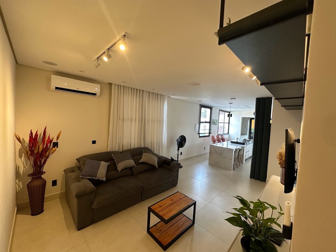Modern and cozy house in the heart of Montes Claros. Fully equipped with a jacuzzi, barbecue, air conditioning in all rooms, premium bed linens, a fully stocked kitchen, and cutting-edge technology like Alexa, Bluetooth speakers, cable TV channels, USB outlets, and electronic locks. Centrally located near markets, restaurants, and parks. Impeccably clean with attentive hosting, ensuring an unforgettable experience. Perfect for families, friends, or business trips. Feel at home!!