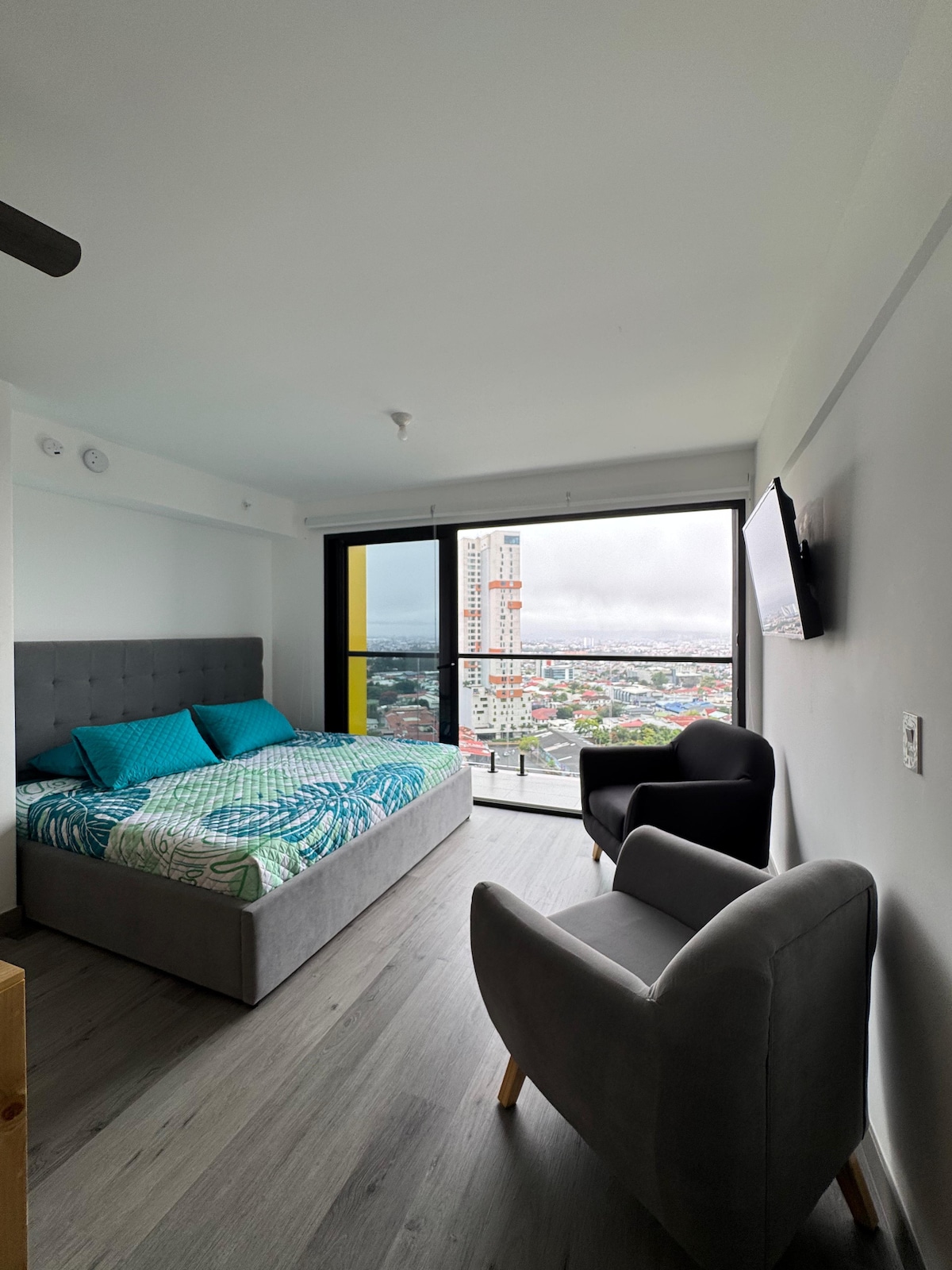 ✨ Piso 18 con vista panorámica y brisa fresca ✨ Este loft moderno combina estilo y comodidad con un balcón integrado y cortinas blackout para mayor confort. Perfecto para parejas, viajes de trabajo o estancias largas, ofrece Wi-Fi rápido, área de iworking, piscina y parqueo privado. Ubicado en una zona segura y céntrica de Curridabat, tendrás todo a tu alcance. Como Súper Anfitrión Top 10% en Costa Rica, garantizo atención rápida y dedicada para que tu estadía sea inolvidable. 🌟