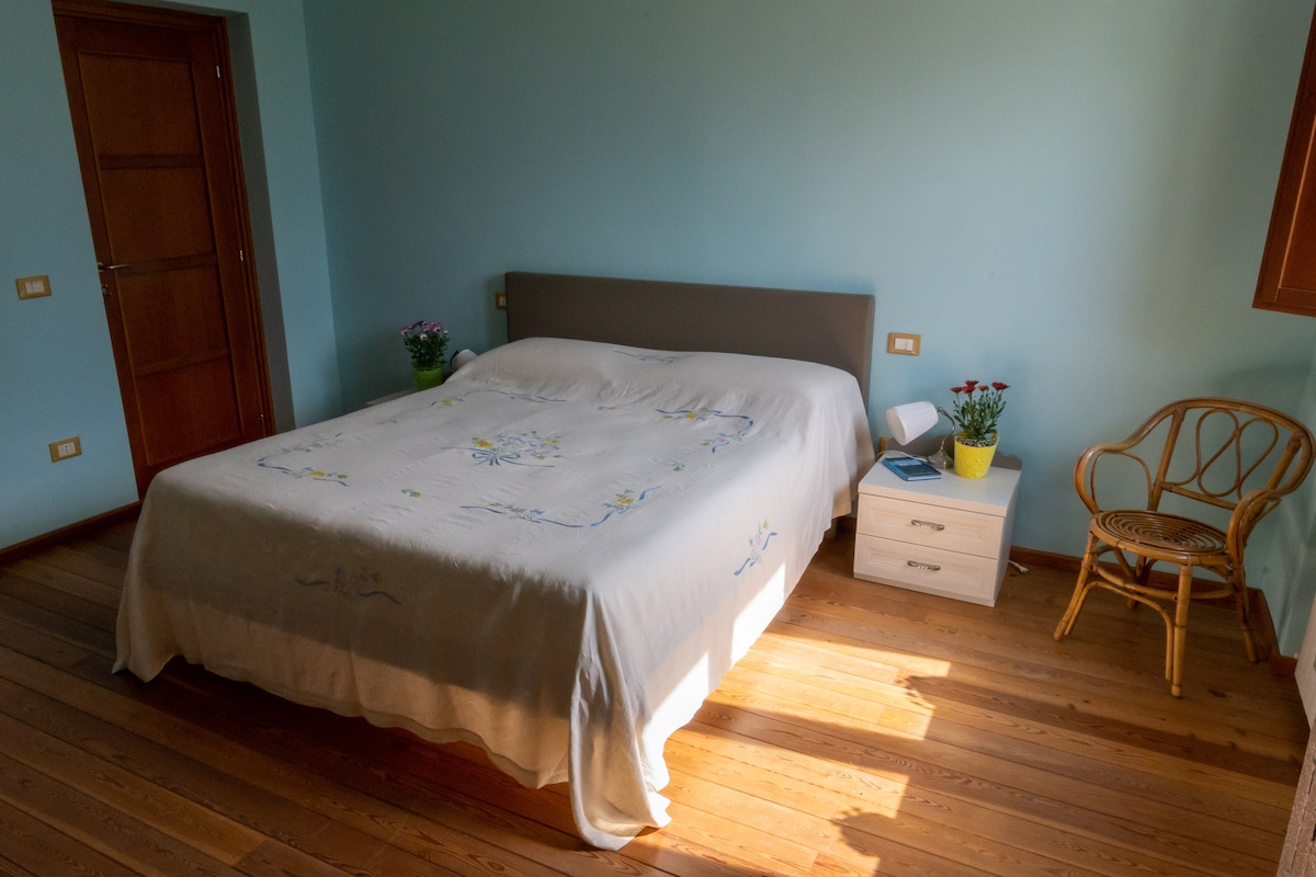 Camera matrimoniale con accesso indipendente e bagno privato all'interno di villa signorile con piscina immersa nel verde delle colline abruzzesi con vista sulla Majella. Siamo in una posizione strategica, situata a 20 min d'auto dal mare e centro di Pescara collegata agevolmente da superstrada nelle immediate vicinanze che permette di raggiungere oltre alla città, i principali luoghi di escursionismo nella vicina Majella, Gran Sasso, Parco Nazionale D'Abruzzo e la famosa Costa Dei Trabocchi.