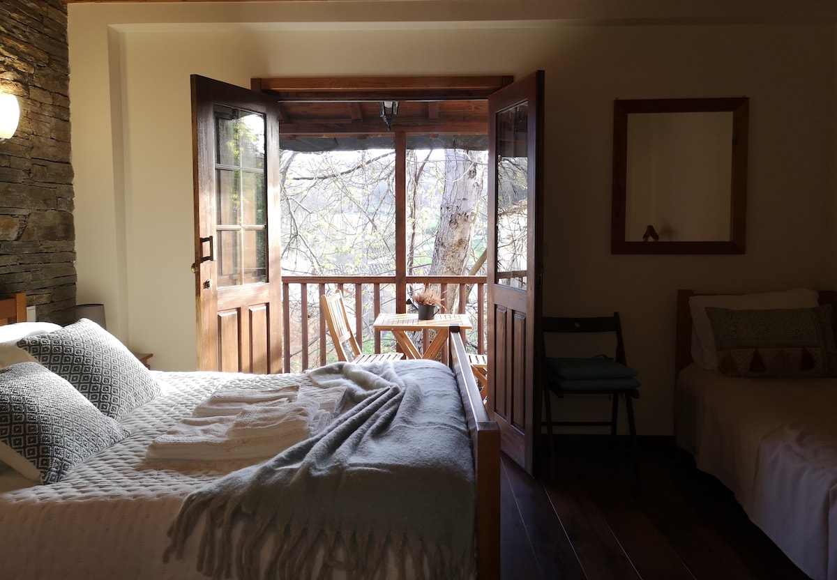 A restored house with all the comforts you need for a wonderful retreat and/or get-together with family and friends. This house is located in an old abandoned village near the river with a beautiful little beach. If you enjoy being in contact with nature, this is the ideal place; you can find otters, many varieties of birds, etc. The house has two bedrooms, a bathroom, a fully equipped kitchen, and air conditioning. The pool is shared with another house. Meals are available upon request.