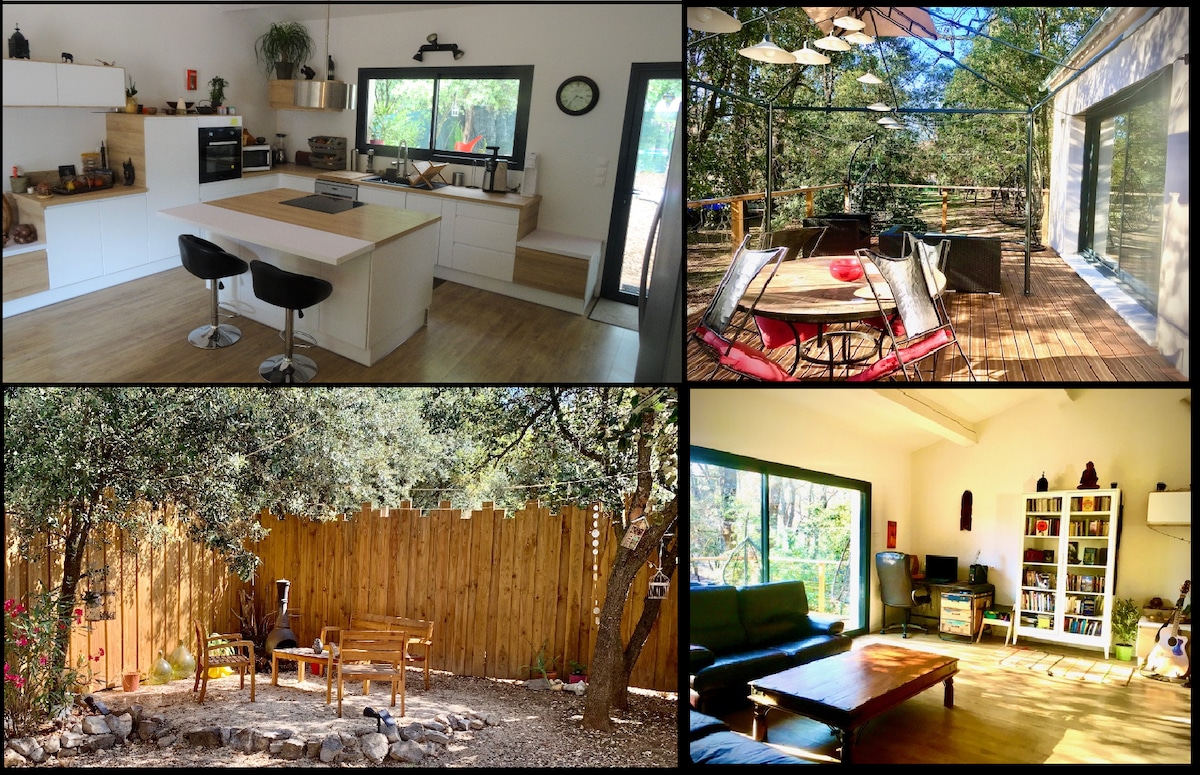 Maison atypique à toit plat et bardage naturel pour une intégration parfaite dans son environnement. Sur une parcelle de 1200 m2 arborée d'oliviers et de plantes xérophytes, venez profiter, à l'écart des regards, du calme de la campagne méditerranéenne. Une terrasse en bois, un jacuzzi en inox et un braséro focus vous attendent pour des moments de détente inoubliables à 2 !