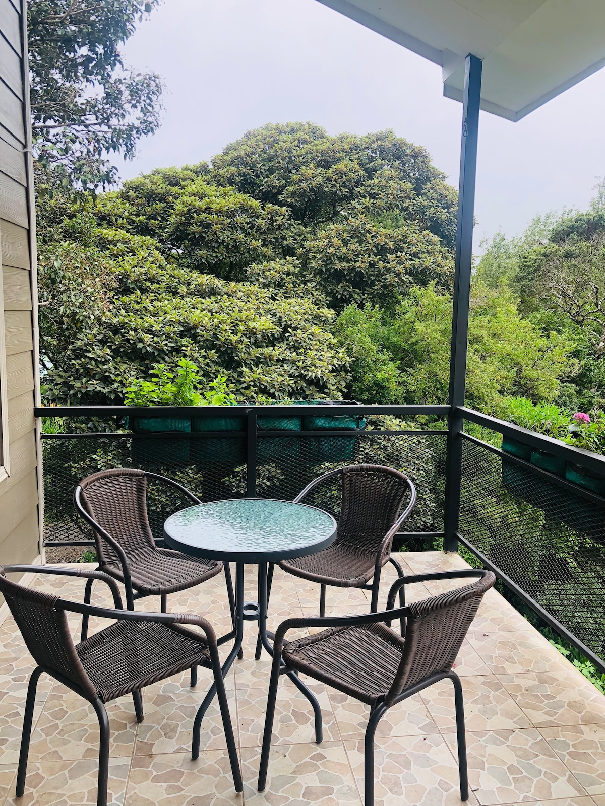 The studio is a cozy upstairs space ( 1 King Bed) with panoramic views of the forest. Newly added feature with balcony at canopy level gives a birds eye view from your private spot, perfect for taking in the local forest. Location is surrounded by tropical trees and looking over green pastures. Equipped double bed, we could arrange additonal bed of requeated. Also refrigerator, one burner, small fridge and café maker. Limited cooking.